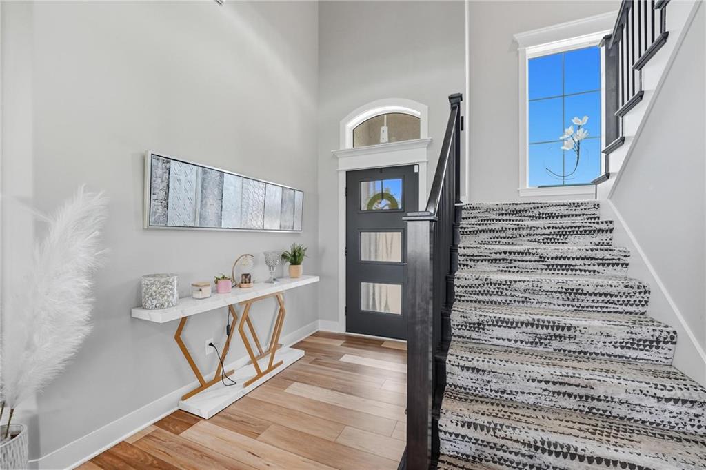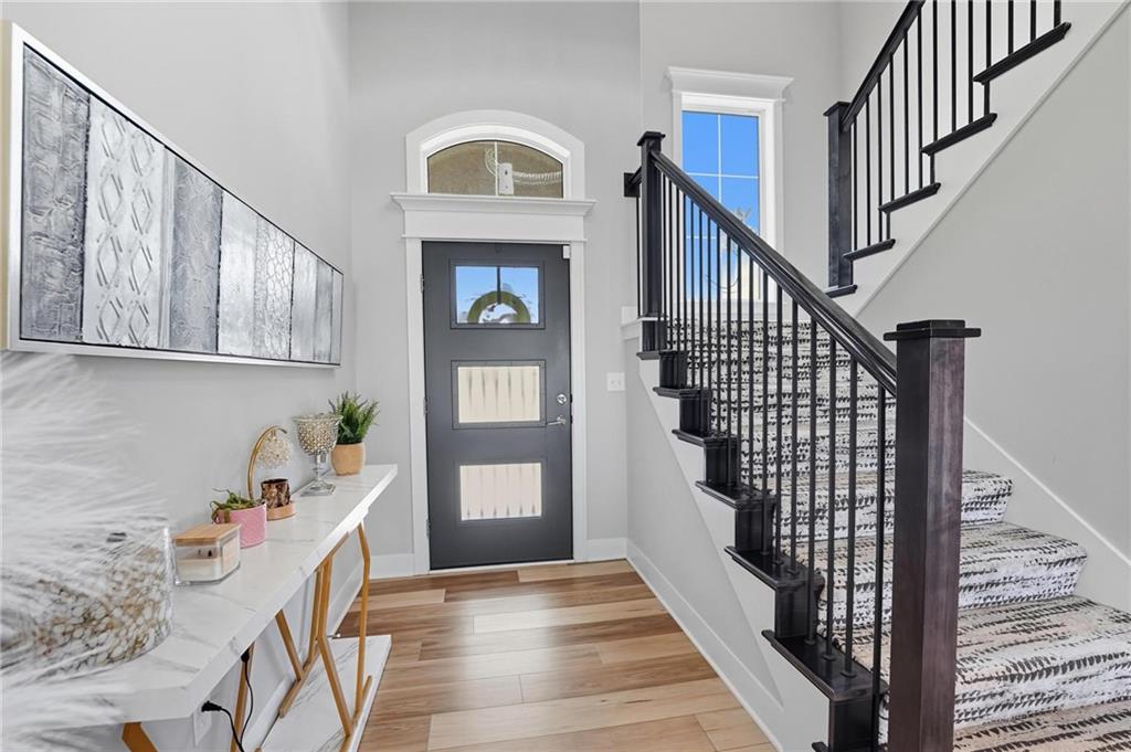 Don't miss this well thought-out, open and modern two story home. Upgraded finishes galore! The light and bright main level welcomes you with a sleek corner fireplace, floor to ceiling kitchen cabinets, gas range with hood, large island, black granite countertops and an oversized, walk-in pantry. Welcoming covered patio is easily accessed from the dining area. Full sized office also located on the main level. Enjoy the oversized drop zone off the garage, which includes a built-in desk and coat closet. Upstairs has 4 bedrooms and 3 full bathrooms. Spacious primary bedroom with full sized laundry room that connects to the huge walk-in closet. En suite bath with double vanity, walk-in shower and soaking tub. Large unfinished basement is just waiting for your finishing touches. All of this located on large corner lot in a beautiful neighborhood. Close to highways, schools and shopping. Come check it out!