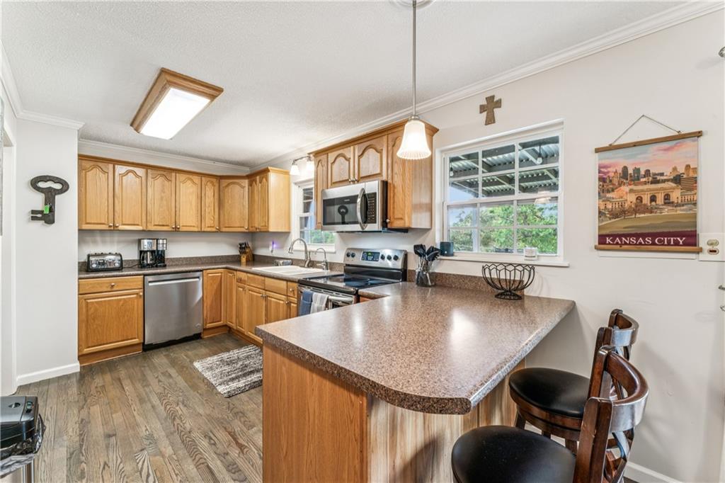 Discover peaceful country living at Sarcoxie Lake! A hidden oasis! This beautifully maintained 3-bed, 2-bath lakefront home is situated on nearly half an acre. Enjoy serene water views, a spacious walkout lower level, cozy fireplace, and gleaming hardwood floors. Recent updates include an impact-resistant roof (2019) and HVAC system (2015), new microwave (2025), new dishwasher (2024), new carpet in bedrooms (2023), interior paint (2023) & new asphalt driveway (2023). The property’s setting combines quiet rural charm with quick access to Lawrence, Bonner Springs, and Kansas City via K-32. Part of the highly regarded Basehor-Linwood School District, this home provides the perfect balance of privacy and convenience. Relax on your deck, fish or kayak nearby, and experience small-town living with big-city amenities just minutes away!