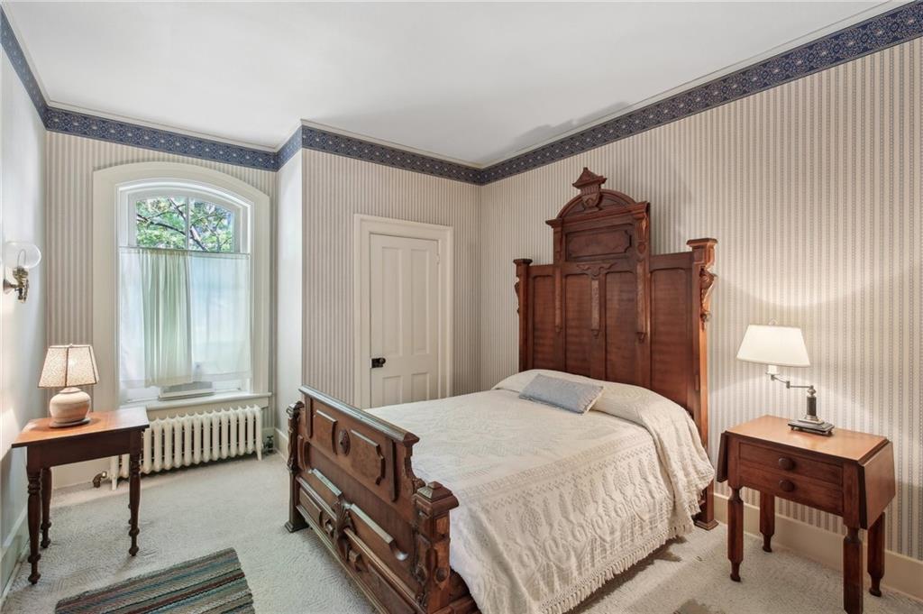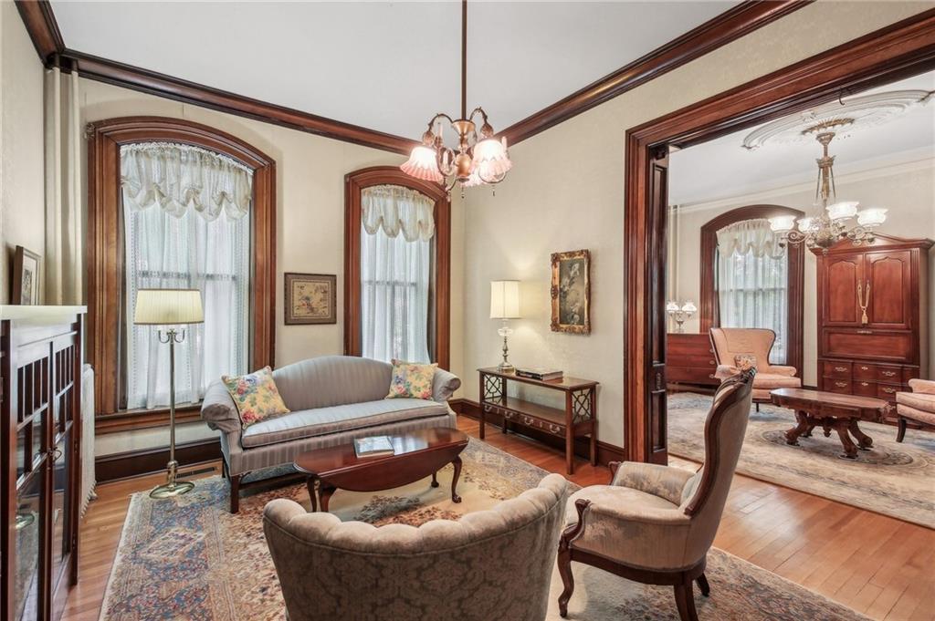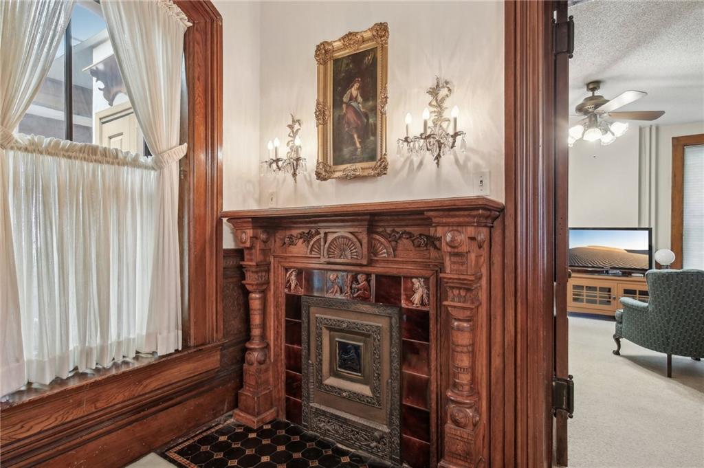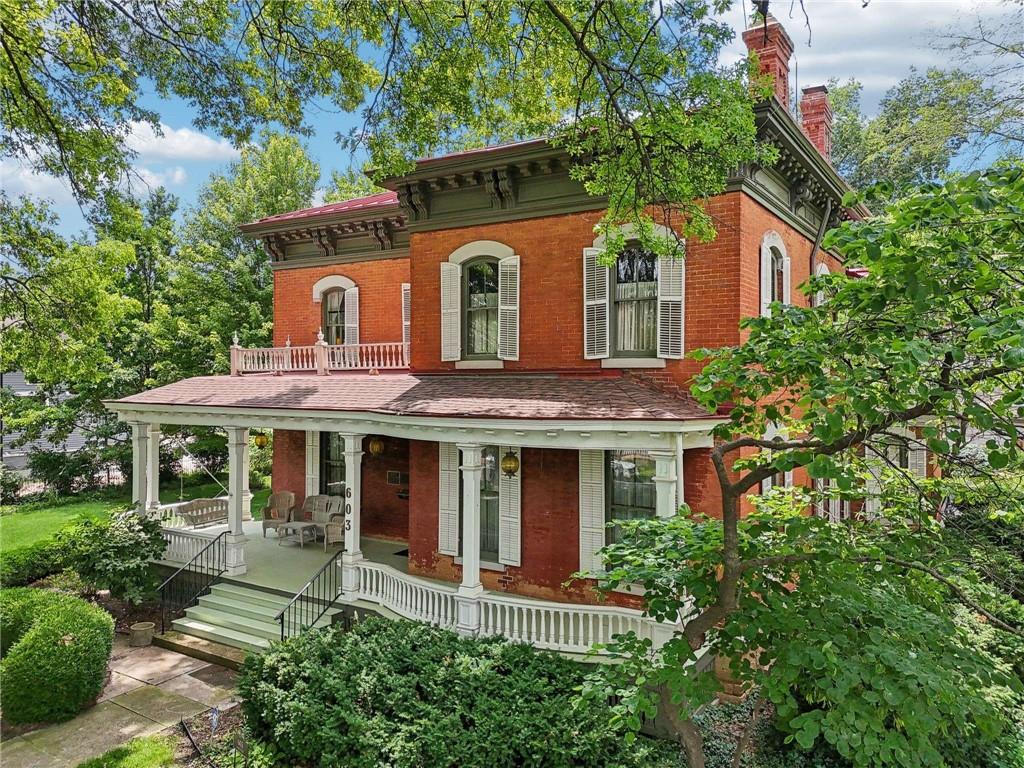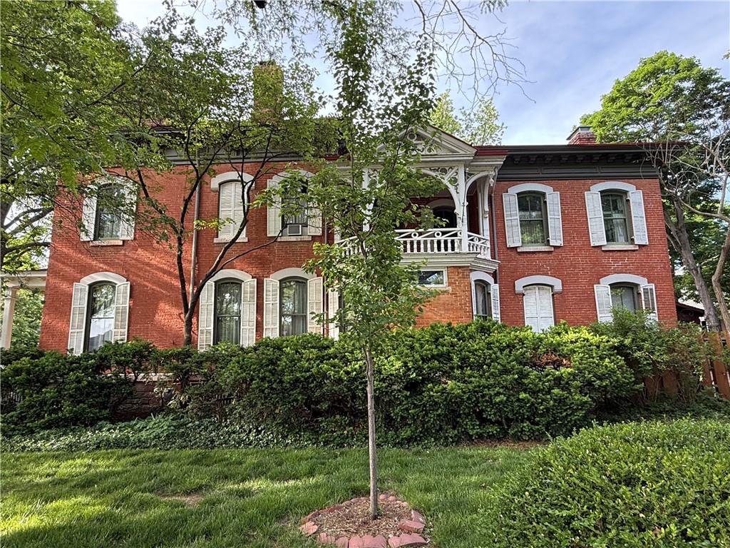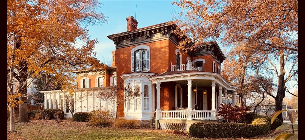 OPEN First time available since the sellers moved in 1964. The home has been fastidiously maintained and preserved and the extraordinary original interior elements are intact and preciously rare. The floor plans and architectural drawings of hand crafted elements are in the Library of Congress Archives. (See additional documents). There is a file box of history records that comes with the property, including the original Abstract of Title drafted during James Buchanan's Presidency. Special elements: $70,000 custom metal roof, skylights, and gutter repair (with insurance proceeds). New electric mast and breaker box (2025), Reflection pool, landscaping, patio and original 1880 brick outhouse; 40% Historic Tax Credits for qualified improvements (consult legal and tax advisors). Earned Tax credits may be applied to Kansas taxes or SOLD to others who can use the Kansas tax credits. SPECIAL FEATURES: * High end, specially sourced, original Tiffen stained glass; * Intricate masonry foundation stone and brick solidly embedded with over 150 years of mass; Approximately 2-foot thick, sound-deadening brick walls * Original paneled wood doors & leaded glass windows * Hardwood & Softwood floors (Oak, pine, fir) * Original chandeliers - ornate ceiling medallions to capture candle smoke - and original gasoliers converted to electric * Architectural drawings of crown molding, trim, newel post, fireplace mantels, and floor plans are in the Library of Congress Archives. * Impeccable hand-tooled wainscoting (Lincrusta dado) * 3 ornate fireplaces (Imported; extraordinary tiles) Stott-on-Trent fireplace tile as found in the Vatican, (sourced by Minton) *The Parlor Library features a converted working gas fireplace * Built-in bookcases * Large rounded porch * Scenic 2nd floor balcony * Extraordinary perennial garden and landscaped reflecting pool with waterfall * Extensive historic documentation including origin of rare & precious decorative elements.