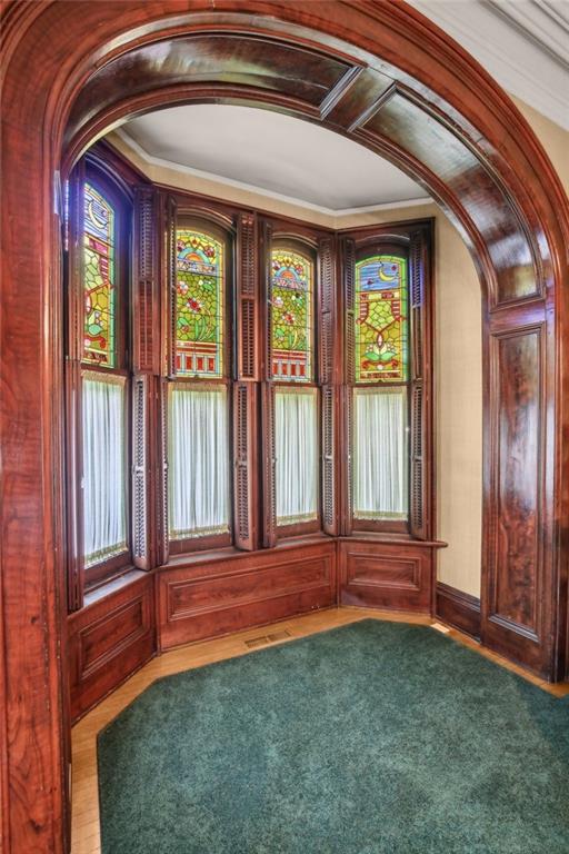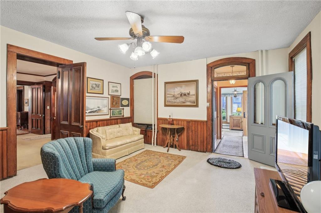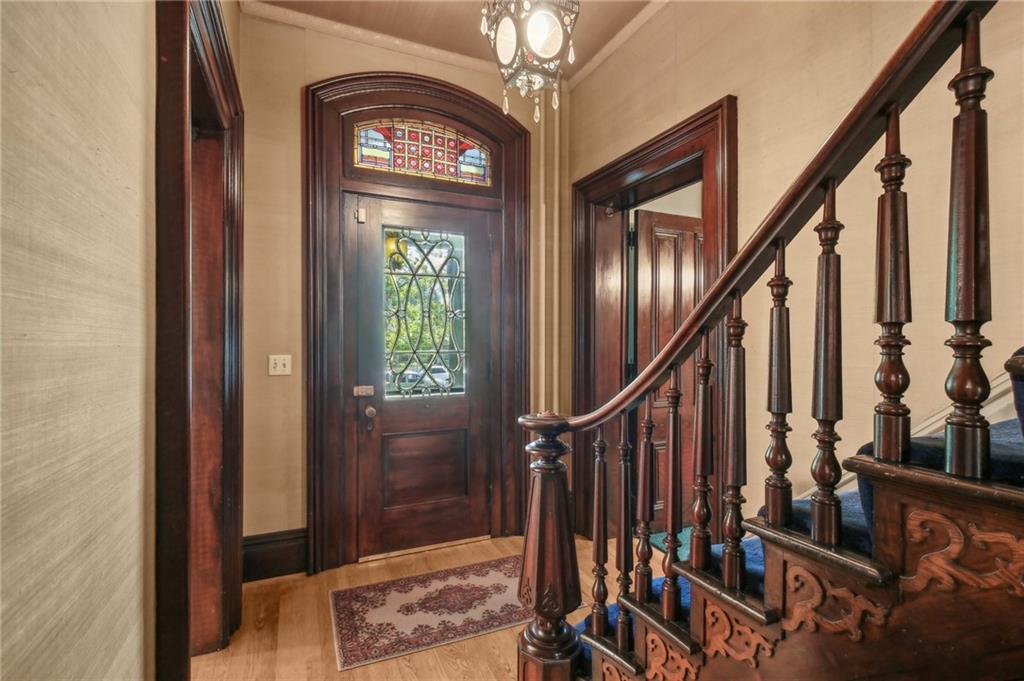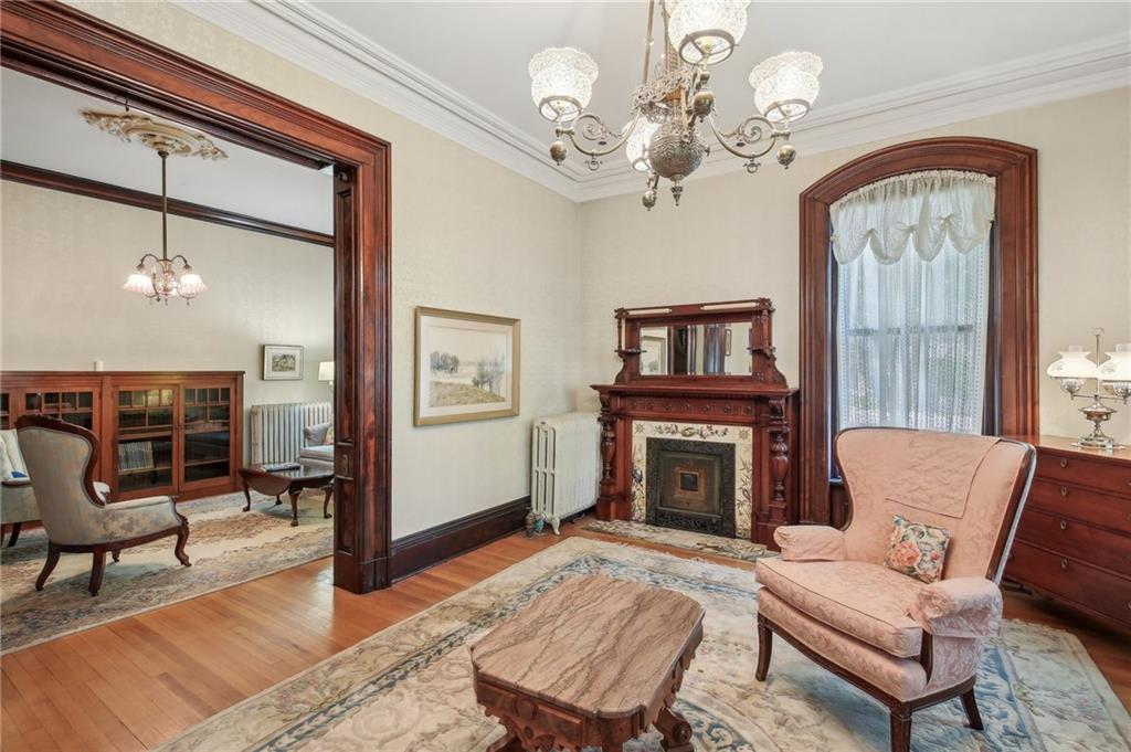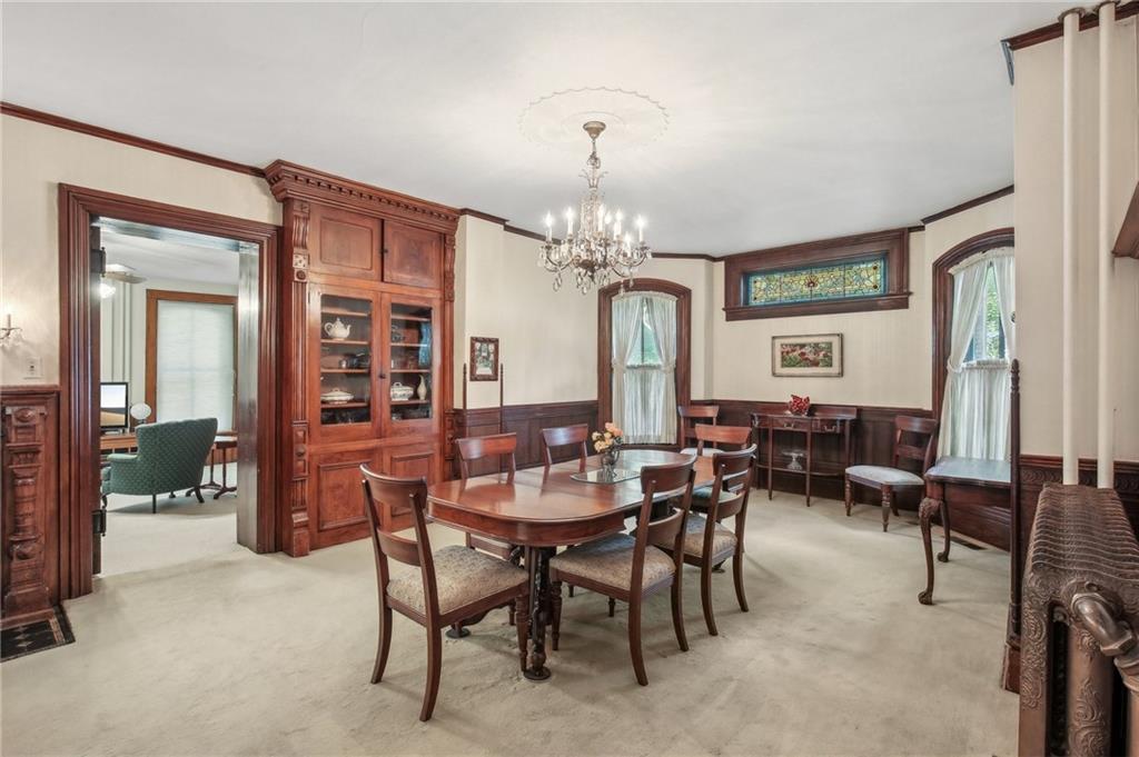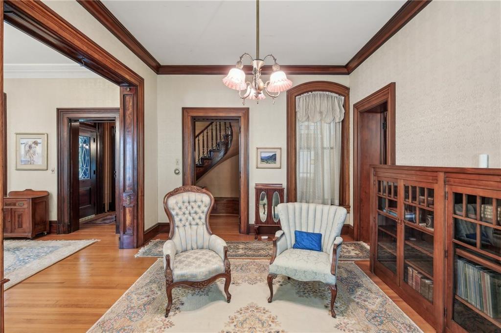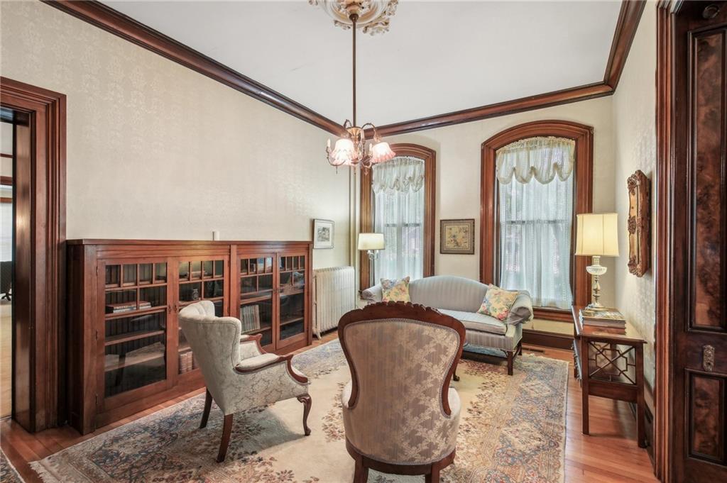 OPEN First time available since the sellers moved in 1964. The home has been fastidiously maintained and preserved and the extraordinary original interior elements are intact and preciously rare. The floor plans and architectural drawings of hand crafted elements are in the Library of Congress Archives. (See additional documents). There is a file box of history records that comes with the property, including the original Abstract of Title drafted during James Buchanan's Presidency. Special elements: $70,000 custom metal roof, skylights, and gutter repair (with insurance proceeds). New electric mast and breaker box (2025), Reflection pool, landscaping, patio and original 1880 brick outhouse; 40% Historic Tax Credits for qualified improvements (consult legal and tax advisors). Earned Tax credits may be applied to Kansas taxes or SOLD to others who can use the Kansas tax credits. SPECIAL FEATURES: * High end, specially sourced, original Tiffen stained glass; * Intricate masonry foundation stone and brick solidly embedded with over 150 years of mass; Approximately 2-foot thick, sound-deadening brick walls * Original paneled wood doors & leaded glass windows * Hardwood & Softwood floors (Oak, pine, fir) * Original chandeliers - ornate ceiling medallions to capture candle smoke - and original gasoliers converted to electric * Architectural drawings of crown molding, trim, newel post, fireplace mantels, and floor plans are in the Library of Congress Archives. * Impeccable hand-tooled wainscoting (Lincrusta dado) * 3 ornate fireplaces (Imported; extraordinary tiles) Stott-on-Trent fireplace tile as found in the Vatican, (sourced by Minton) *The Parlor Library features a converted working gas fireplace * Built-in bookcases * Large rounded porch * Scenic 2nd floor balcony * Extraordinary perennial garden and landscaped reflecting pool with waterfall * Extensive historic documentation including origin of rare & precious decorative elements.