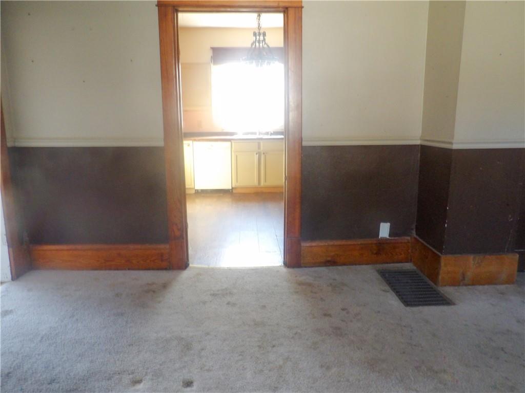 older 1/2 story bungalow home with1176 sq. ft. Glass French doors from entryway to living room. Open archway between living and dining area. 2 bedrooms upstairs. 1 non-conforming bedroom in basement. 1 and 1/2 bathrooms. Large front porch with porch swing. Privacy fenced back yard. Driveway off of alley.