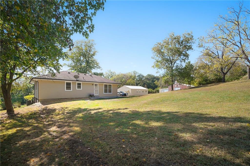 Looking for land in the city? Plenty of space for hobbies, multi-generational living, projects and investments? This Cherry St property in South KC has a wealth of opportunity for you! Beautiful wooded land with rocky outcroppings, a charming 3 bed, 2 bath house, and 2 giant outbuildings mean you can make those dreams come true. The updated home has a finished basement, new paint throughout, new carpet and spectacular views. It is tucked away in a quiet neighborhood, close to Martin City. Outbuilding 1 (the eastern bldg) has 1900 sq ft, 4 offices, storage space and an apartment with a private entrance. Outbuilding 2 (to the west) has 3800 sq ft, office space, a restroom, large garage doors and oodles of features. In these outbuildings you will find: - Insulated, 125k propane heater, and 24k 240v wall a/c unit - Plumbed throughout with 3/4 and 1/2 shop air line, wired for your air compressor - 2 Utility sinks with hot and cold water - 36" Attic fan and three 12" wall shutter fans for ventilation - Bend Pak 12.5k lb free standing vehicle hoist, with new lift cylinders and hydraulic hoses - Wired for second vehicle hoist - Large number of 120v electrical outlets and 240v 30 amp outlets - Shop space is well lit, with easily serviceable fixtures - 30+ feet of heavy duty built-in shop benches, lined with 16 gauge and 11 gauge sheet metal Don't miss your chance to build your future on Cherry St, book your showing today!
