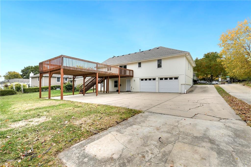 ***Back on the market - NO fault of seller! Investors cancelled right before closing *** Significant price improvement -schedule today before it's gone! Welcome home!! Here's the perfect property in a great location in Lee's Summit you've been looking for! Raised ranch with some unique features and updates you'll love! There's plenty of space for your visitors to park with an expanded deck with 3 carports underneath and 2 car garage in back. For easy access and few steps, the front circular drive is a great addition. Upstairs, you'll find a spacious kitchen, laundry, living and dining areas with 3 bedrooms and 2 baths. Enjoy the living room fireplace for cozy, colder evenings and coffee or meals on the deck during the warm months! Downstairs, an additional bathroom, non-conforming bedroom (with fireplace), and living room provide a separate living space, complete with a walkout to the backyard with private greenspace and direct access to the spacious garage (with HVAC). Newly repainted, new flooring, added deck support and a one year old roof with transferable warranty make this raised ranch move-in ready just in time for you to move in by the holidays and make this house your home!