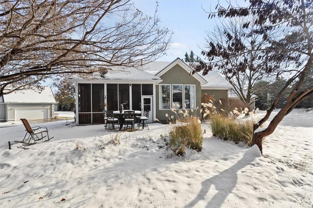 Welcome home to this exceptional reverse 1.5-story stand-alone patio villa on a quiet cul-de-sac in the popular Deer Creek Courts community. This villa offers easy main-level living with soaring ceilings and large windows that bring in abundant natural light. The living room has remote-controlled window coverings and a cozy two-sided fireplace that opens to the kitchen area. The updated eat-in kitchen includes granite countertops, newer appliances, beverage fridge and ample cabinet space. Off the main living area, enjoy the screened-in porch and a private patio surrounded by beautiful landscaping—perfect for relaxing or hosting a gathering. The main-level primary bedroom suite includes an attached bath with a walk-in shower, separate soaking tub, double sinks, and a generous walk-in closet. The finished lower level adds a nice-sized family/rec room, two additional bedrooms, a full bath, and an unfinished storage area with custom shelving. Other features include new living room and kitchen floors, main-level laundry, and a 2-car garage with built-ins. The HOA takes care of mowing, snow removal and trash removal. Great location close to shopping, restaurants, and easy highway access.