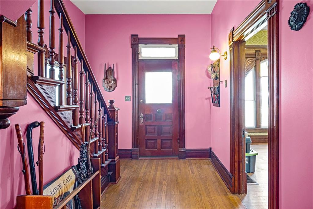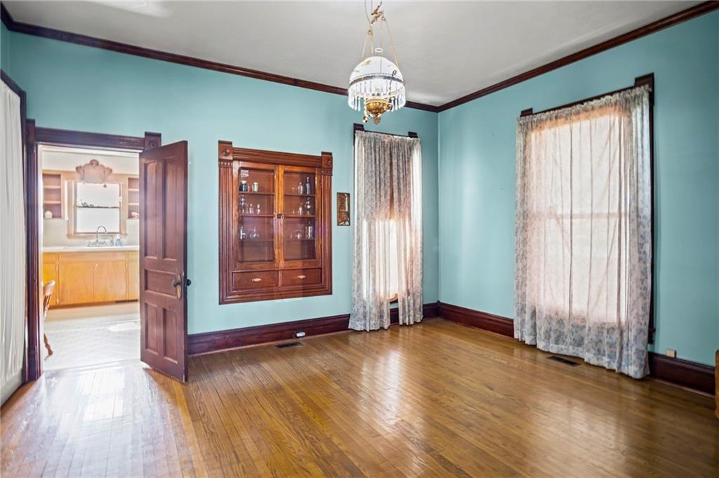 This well-maintained Victorian home is situated in the picturesque town of Denton, KS. Built in 1885, the property features two ornate front porches and a large ornate picture window, highlighting its classic architectural charm. Recent upgrades include a new roof and copper-colored guttering. The residence sits on a spacious 1-acre lot, providing ample space for outdoor activities, and includes both a garage and a shed for storage. Inside, this 3-bedroom Victorian showcases intricate woodwork, detailed wood doors, a French door, an elegant staircase, and hardwood flooring throughout. Additional features include custom built-ins, ornate light fixtures, and a fireplace that enhances the home's historic appeal. The kitchen is spacious and is equipped with appliances that stay with the property, while the adjacent laundry room provides convenient access directly from the kitchen. There is a bathroom on the main floor, while the upper level offers three expansive bedrooms, one of which has potential for an additional bathroom, as well as a separate office space. This property combines timeless charm with practical amenities, making it an exceptional opportunity for those seeking the character of a historic home.
