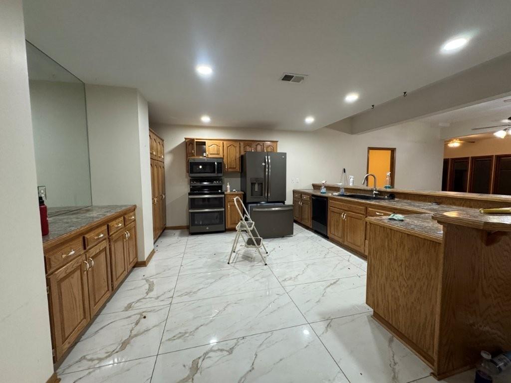PROFESSIONAL PICTURES COMING SOON!! Have Your Own Park Setting in the City! Experience luxury, privacy, and craftsmanship — all in one incredible home! This property is packed with upgrades and high-end features, including: Fresh Paint throughout New Tile Flooring for a modern touch Newer Upgraded Architectural Roof Rain Bird In-Ground Sprinkler System Pella Windows & Sliding Doors for energy efficiency and beauty Security System for peace of mind 10’ Concrete Basement Walls Structural Steel Beams & 6” Columns allowing wide open spaces without obstruction 3-Car Garage on Main Level + 1-Car Garage on Lower Level Hardwood Entryway Covered Tile Patio — perfect for entertaining Limestone Accent Wall with a Custom-Built Rock Staircase Upgrades Galore! Enjoy the feeling of a private park right in the city — this one-of-a-kind property offers beauty, strength, and style that stand out from the rest!