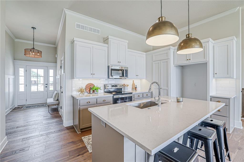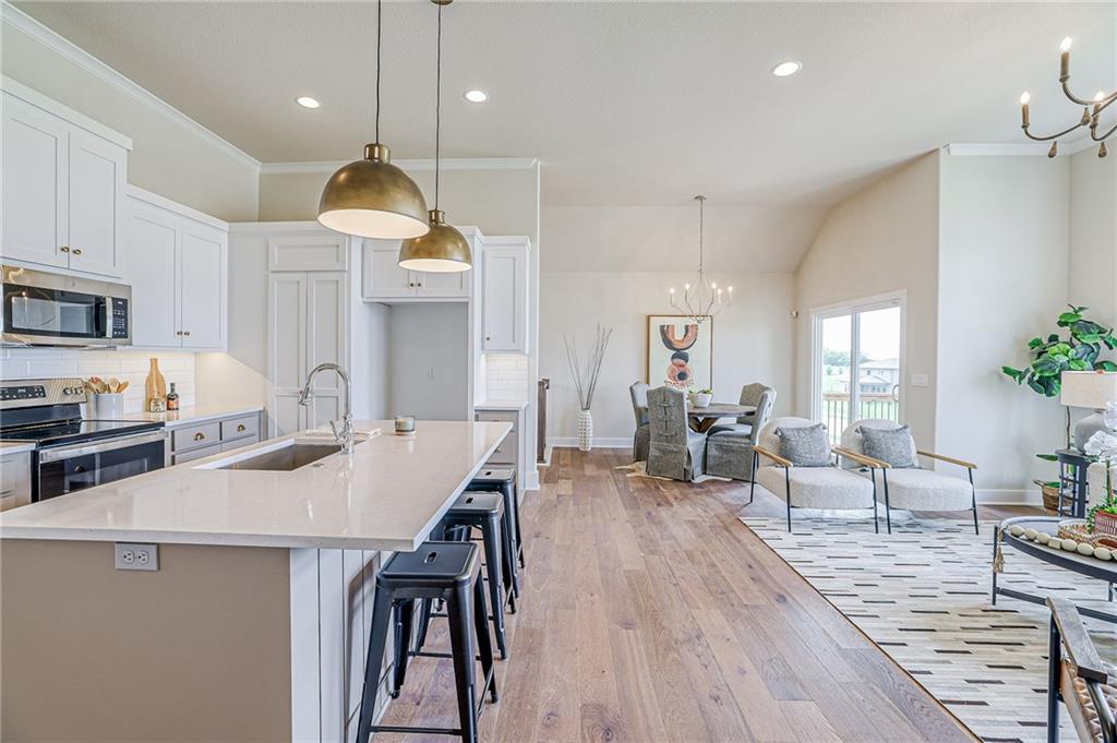 >>> MOVE-IN READY NOW >>> The "Stratford" Villa Reverse is here at Heritage Ranch! As you enter into this beautiful entry, bedroom #1 has its own hallway to enter the bedroom, hallway has a linen closet and coat closet. Full bathroom next to the bedroom. The main level laundry is along the way to the hallway to the Primary En-Suite. The Primary bath has 2 vanities, beautifully tiled shower and walk-in closet. The Kitchen has custom cabinets, kitchen island facing the great room, pantry and s/s appliances. The Great Room has a cozy fireplace with ample natural light from all the windows along the back of the home, next to the dining area and access to the covered deck. Opposite the covered deck is the stairs to the finished lower level. Which has bedroom #3 and bathroom #3 with custom tiled shower, with an optional choice to finish a 4th bedroom. Full walkout basement with such incredible natural light! All in the coveted Heritage Ranch, A Lambie-Rieke Community, with Amenities Galore such as state-of-the-art pool, clubhouse, trails, pickleball. play area, half-court basketball, Putting Green & ponds. This community provides a wonderful lifestyle and right next to Heritage Park with Dog Park, Sports Parks, Golf, Lake and so much more! Taxes and Sq. Ft are estimated. Buyer or Buyer Agent to confirm. SPEC HOME on LOT 74.