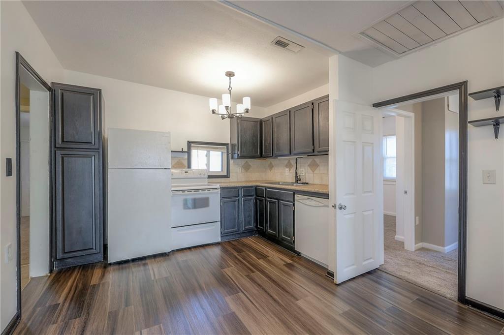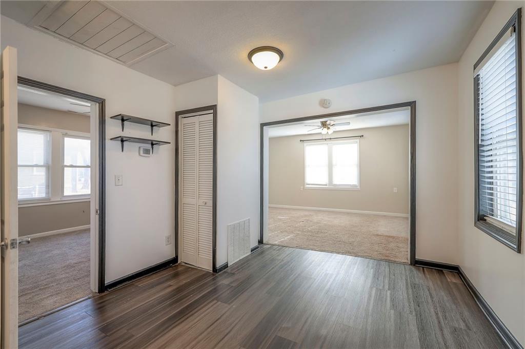 Discover this charming starter home or investment opportunity located in town in Harrisonville. Cozy 3 bedroom, 1 bathroom ranch-style home that offers an excellent entry point into homeownership. Open floor plan with new paint in 2 bedrooms, bathroom and kitchen/dining room areas. Newer flooring in the kitchen/dining room and recently painted kitchen cabinets and laundry room. Roof is only 4 years old. Selling As-Is.