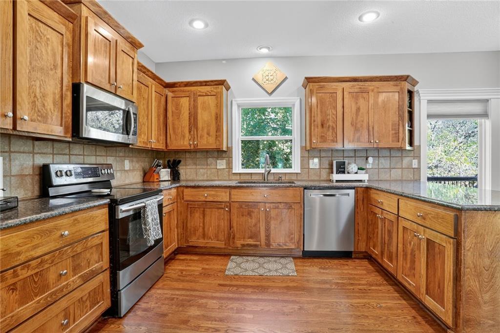 This is THE ONE! All the amenities you have been looking for in a new home, without having to pay the new construction prices! Gorgeous open 2 story plan by DCB Homes. Located on a quiet cul-de-sac in Brooklyn Highlands that backs up to trees for privacy, yet close enough to all everyday conveniences. Large open kitchen with granite countertops and stainless steel appliances provides ample room for preparing dinner or just hanging out with family and friends. Living room has floor to ceiling windows, gas fireplace and built in shelving. Unique split staircase takes you upstairs to 4 bedrooms and a separate laundry room. Oversized Master bedroom has a sitting area that overlooks the treed backyard. Double doors lead you to a spa like bathroom with separate shower and jacuzzi tub, ceramic tile floors and a double vanity sink. Through the Master closet is another entrance to the spacious laundry room- plenty of area to sort out all those socks! Please make sure to check out the finished walk out basement. This could be the perfect set up for a multi generational family. Full kitchen area with granite countertops, open area for seating, games, and a media room that is under the suspended garage- for perfect movie nights. Talk about luxury living at its finest~ When you need that last bit of relaxation, your hot tub awaits right outside on the deck- enclosed with a privacy fence that backs to trees. No need to vacation- this home will meet all of those needs. Are you ready to be wowed?- PS- the roof is new also- :)