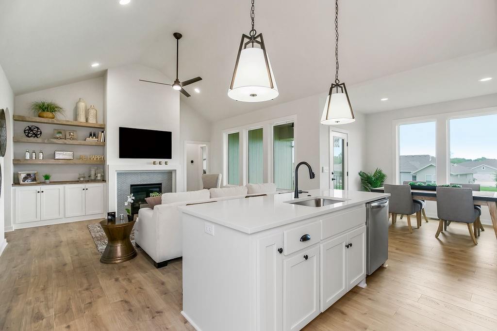 The Clover by Harlow Homes on lot 19L. Live in a beautiful GOLF COURSE COMMUNITY at this price? Yes! FINISHED PHOTOS and TOUR ARE OF A PRIOR BUT SIMILAR HOME. Home is under construction with estimated completion late 1Q. The great open plan includes arched doorways and a vaulted family room and kitchen ceiling! Just the right amount of space with the owner's suite and a second bedroom and bath on the main floor with a second living area on the lower level along with the third bedroom and third full bathroom. Tons of storage as well. Some of the other features of the home include quartz in kitchen, gas cooktop, wall oven and microwave, and a gas fireplace. A nice sized pantry and laundry room are both right off the kitchen. The covered deck is protected on three sides and is shaded from the afternoon sun. Enjoy golf course living in the beautiful Communities of Falcon Lakes!! Great highway access make all parts of the metro area easily accessible. It is less than 15 minutes to the Legends entertainment and shopping district and just 30 minutes to the airport. HOA provides lawn maintenance (mowing and treatments), maintenance of initial landscaping, snow removal over two inches, as well as paint, roof and gutters, as needed. Acclaimed Basehor-Linwood Schools!