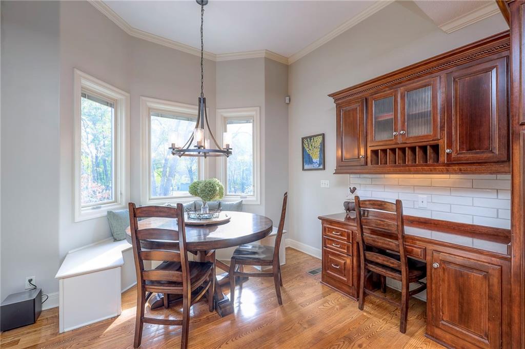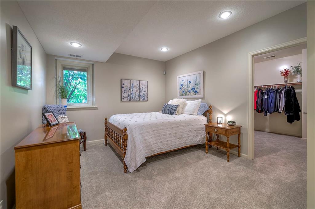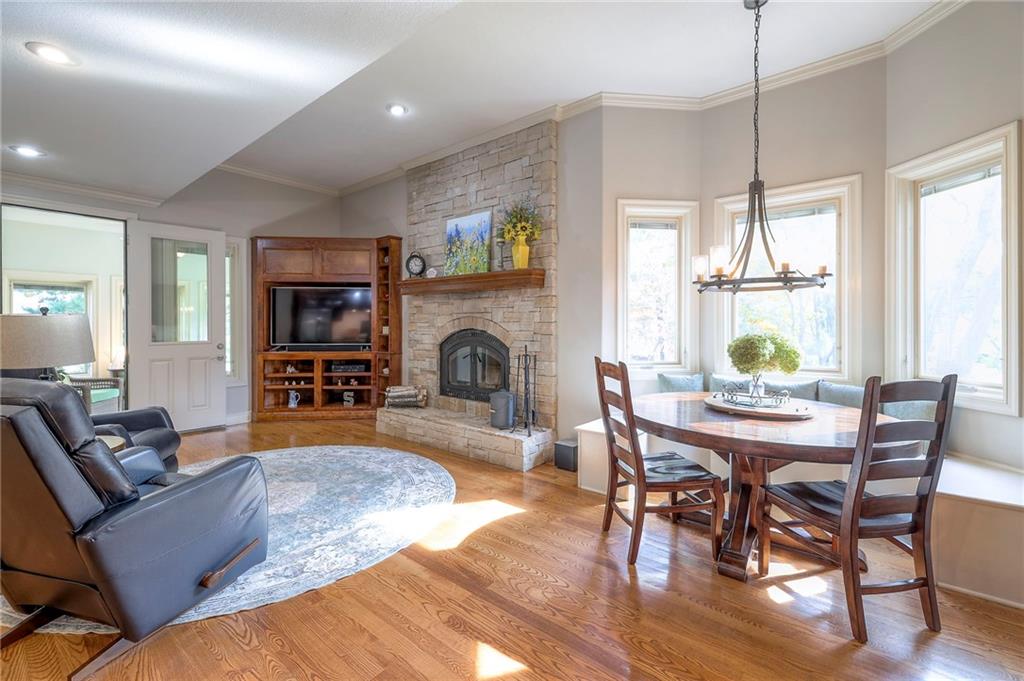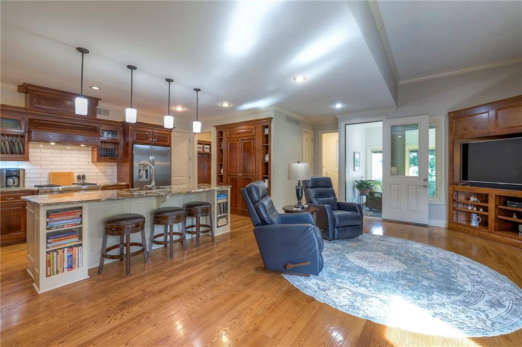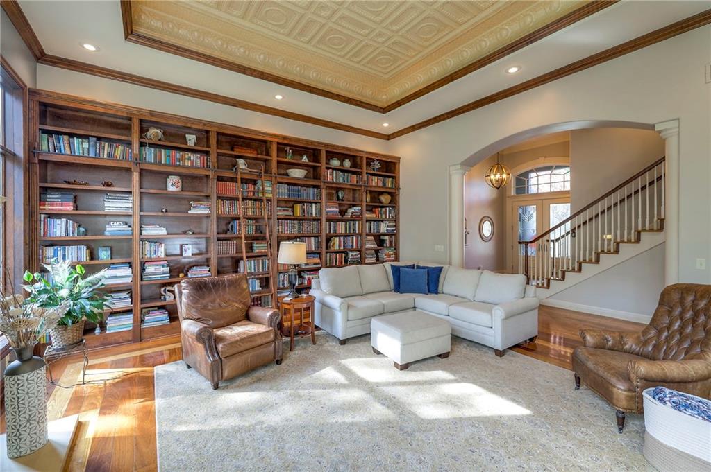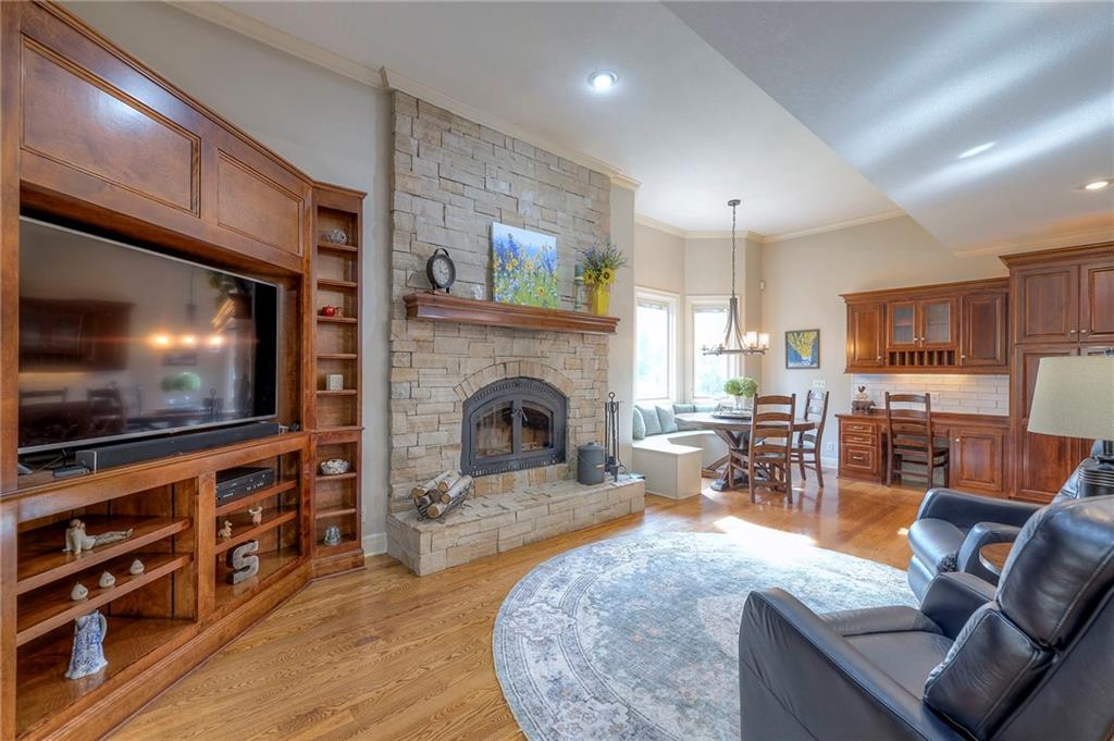 Welcome home to this stunning custom-built 1.5-story residence offering over 6,400 sq. ft. of beautifully designed living space in one of Overland Park’s most desirable neighborhoods. Step through the grand double-door entry into a welcoming foyer that sets the tone for what’s ahead. The oversized formal dining room is ideal for holiday gatherings and entertaining. The main-level living room impresses with its tall ceilings, elegant fireplace, built-in bookshelves, and incredible natural light—it’s a space you simply have to see in person. The gourmet kitchen is fabulous, featuring an oversized hearth room, a Wolf gas cooktop, a beverage fridge, a large kitchen island with seating, abundant cabinetry, and ample counter space—perfect for everyday living or hosting friends and family. The laundry room is conveniently located on the main level and offers plenty of extra space for functionality. The primary suite is a retreat of its own, complete with tray-vaulted ceilings, gorgeous hardwood floors, and a newly remodeled spa-like bathroom featuring a freestanding soaking tub, walk-in sauna, walk-in shower, and an expansive closet. Upstairs, you’ll find three spacious secondary bedrooms, each with fantastic closet space, plus a bonus loft area ideal for a reading nook, study space, or playroom. The finished lower level is an entertainer’s dream—boasting a large rec room with fireplace, second kitchen and bar area, room for a pool table, kids’ play area, and a dedicated exercise room. The home also features a suspended garage, providing an abundance of extra storage space, and the walk-up/walk-out design adds both light and convenience. Step outside to a fully fenced backyard featuring black metal fencing, a composite deck, and a large patio—the perfect setting for outdoor relaxation or entertaining. This home truly has it all—incredible design, comfort, and craftsmanship—and must be seen in person to be fully appreciated!