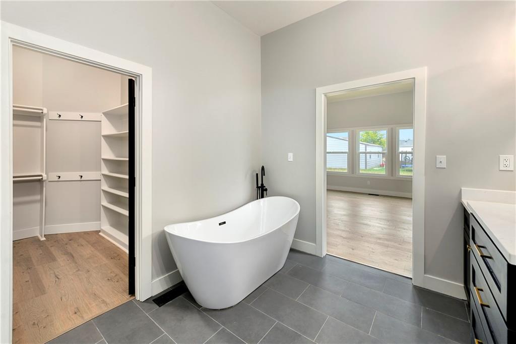 Two high-quality newly constructed 3BR2BA lake homes at Linn Valley Lakes now available! Identical floor plans on side-by-side lots with different design finishes. "The Retreat" ranch plan features soaring ceilings & stylish high-end finishes throughout with NO shortcuts taken! From the moment you enter these homes, you'll be awed by the extra tall ceilings & the luxury flooring-NO carpet here! The huge great rooms are captivating with cathedral vaulted ceiling, 8-blade ceiling fan, & stone fireplace with sitting hearth. The kitchens are gorgeous with quartz countertops, herringbone backsplash, tall cabinets, S/S appliances including range hood & refrigerator, large center island with pendant lighting and a walk-in pantry. The dining spaces are generously sized and walk out to covered patios! The primary suites feature vaulted ceilings, private en-suite bath with huge glass walk-in shower, dual vanities, & free-standing soaker tub, plus huge walk-in closets with built-in dresser. Large secondary bedrooms have ceiling fans & walk-in closets, & share the hall bath with gorgeous glass shower & tile floor. Expansive concrete basements with high ceilings & egress well offers future expansion opportunity. With convenient main-level laundry, windows & closets galore, covered patio & covered front porch, it's clear to see that the builder didn't skimp! Linn Valley Lakes is a vibrant, amenity-rich community just 40 minutes south of Overland Park. Enjoy a 135-acre spring-fed lake for boating & jet-skiing, plus 2 additional stocked fishing lakes. Amenities include a golf course, rentable clubhouse with activities, community center with gym, 2 swimming pools, mini golf, basketball and tennis courts, walking trails, playground, fishing dock, boat ramp, campgrounds, shelter houses, swim beach, sand volleyball, horseshoe pit, & more! Don’t miss this incredible opportunity to live at LVL!
