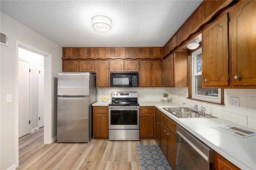 This move-in-ready Split-Entry home features numerous updates, including new luxury vinyl flooring and plush carpet throughout, fresh interior paint, a new furnace and air conditioner, and updated bathrooms! Step inside to an open, light-filled Living Room that flows into a Formal Dining space—perfect for entertaining! The Kitchen includes a built-in microwave, refrigerator, newer dishwasher and stove, plus room for an island or cozy breakfast table. The Primary Suite offers a new shower insert, updated vanity, and plenty of natural light. Two additional Bedrooms complete the Main Level. Downstairs, enjoy a spacious Family Room with daylight windows, a beautiful fireplace, and direct walkout access to the Backyard. Outside, you’ll find low-maintenance brick and vinyl siding, vinyl windows, a fenced backyard, storage shed, and covered deck and patio spaces—ideal for outdoor living! Centrally located near great shopping, dining, and highway access!