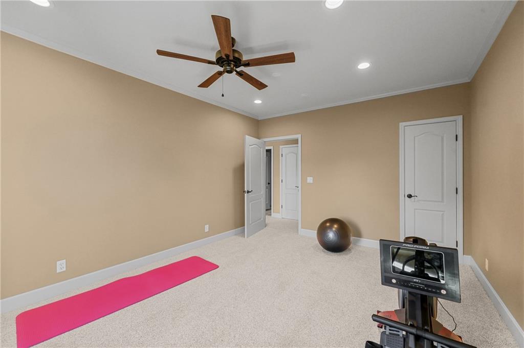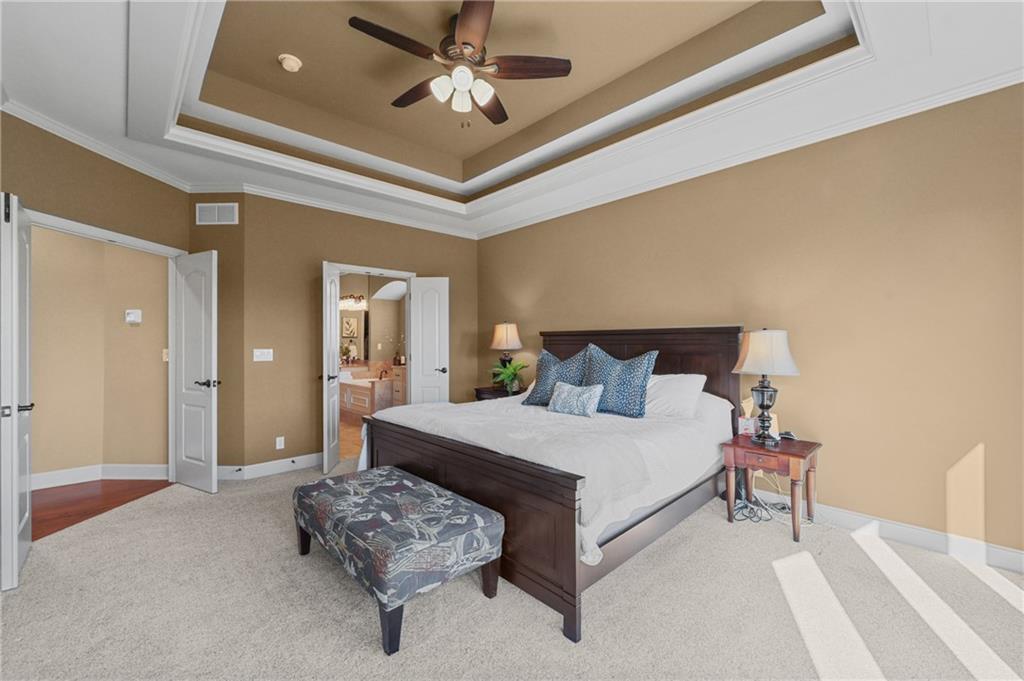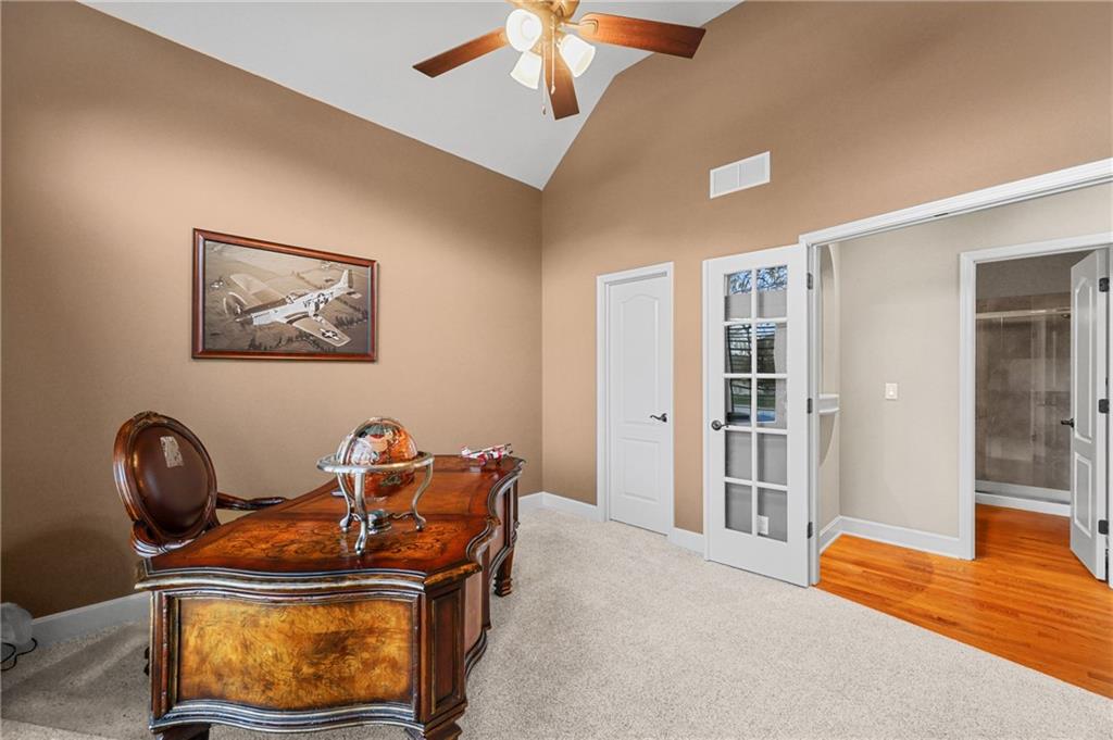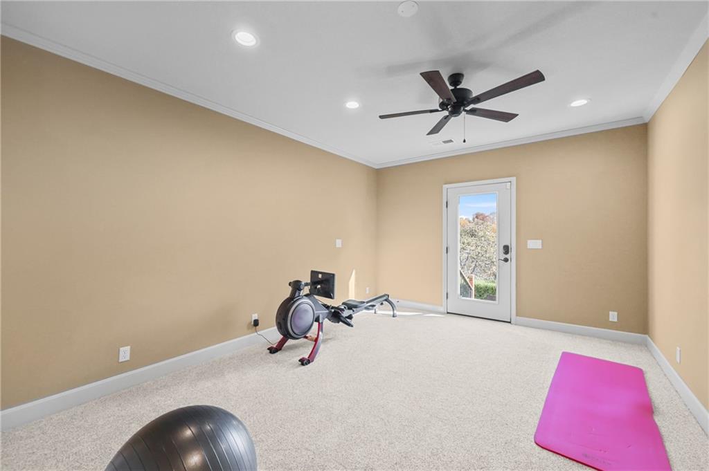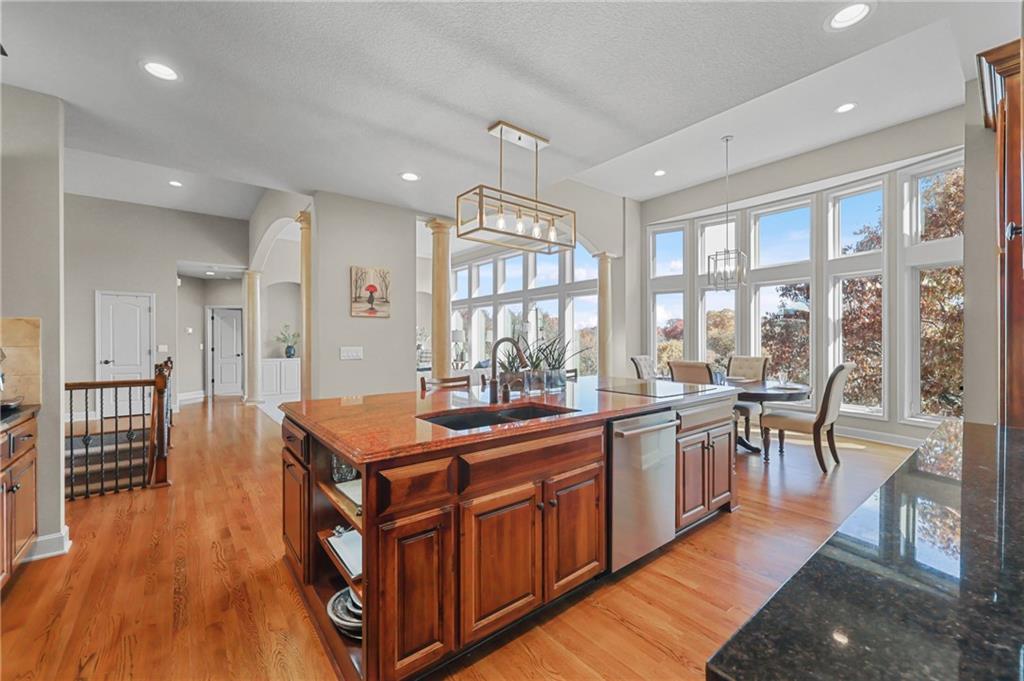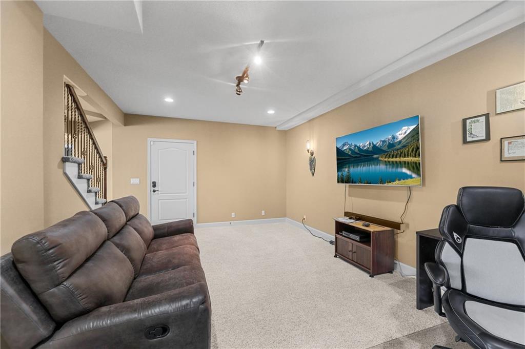 This stunning reverse 1.5-story home perfectly blends comfort, functionality, and privacy. The main level features an inviting open layout with a spacious great room that overlooks a beautiful backdrop of mature trees—with no neighbors behind. The chef’s kitchen is a dream, complete with a massive island, walk-in pantry, and abundant cabinetry—ideal for both entertaining and everyday living. The main-floor primary suite offers serene tree-lined views and a luxurious ensuite bath. A second main-floor bedroom—currently used as a home office—sits adjacent to a full bath, providing flexibility for guests or workspace needs. The walk-out lower level expands your living space with two additional bedrooms (one recently added by the homeowner), a full bath, and two generous family room areas perfect for gaming, media, or relaxation. Unique features abound, including a suspended garage with a fourth garage door, ideal for workshop space or extensive storage, and a large unfinished storage room—previously used by a former owner for a baking business—offering endless potential. Additional highlights include a new roof and gutters with a transferable warranty, electronic blinds in the main-floor great room and primary suite, and a peaceful, private setting surrounded by lush trees. This home truly offers the best of both worlds—modern functionality and quiet natural beauty.