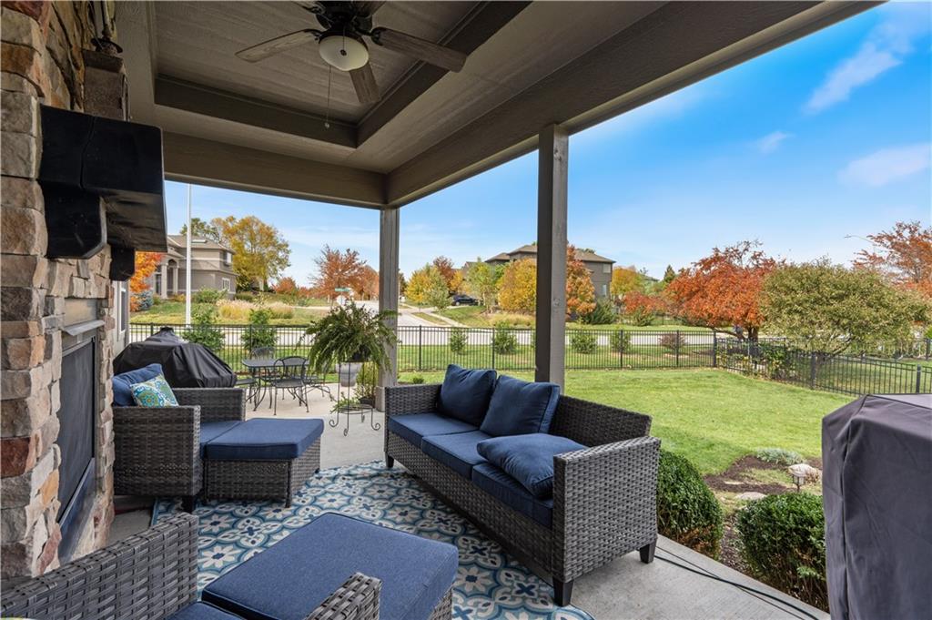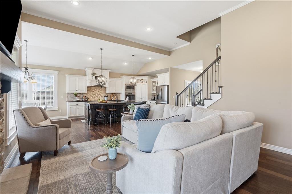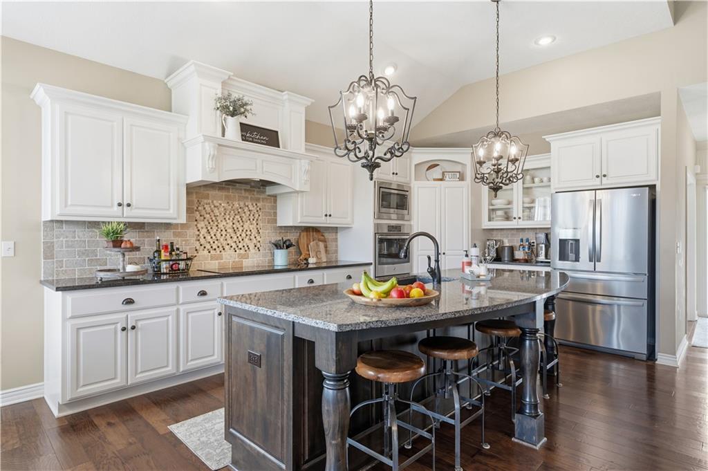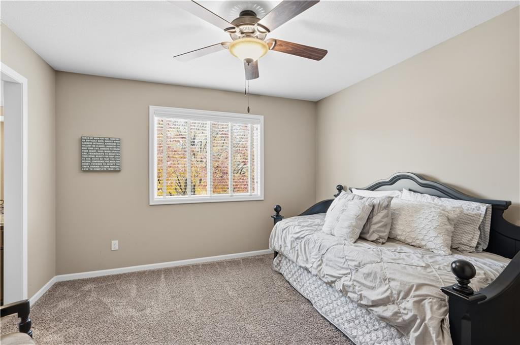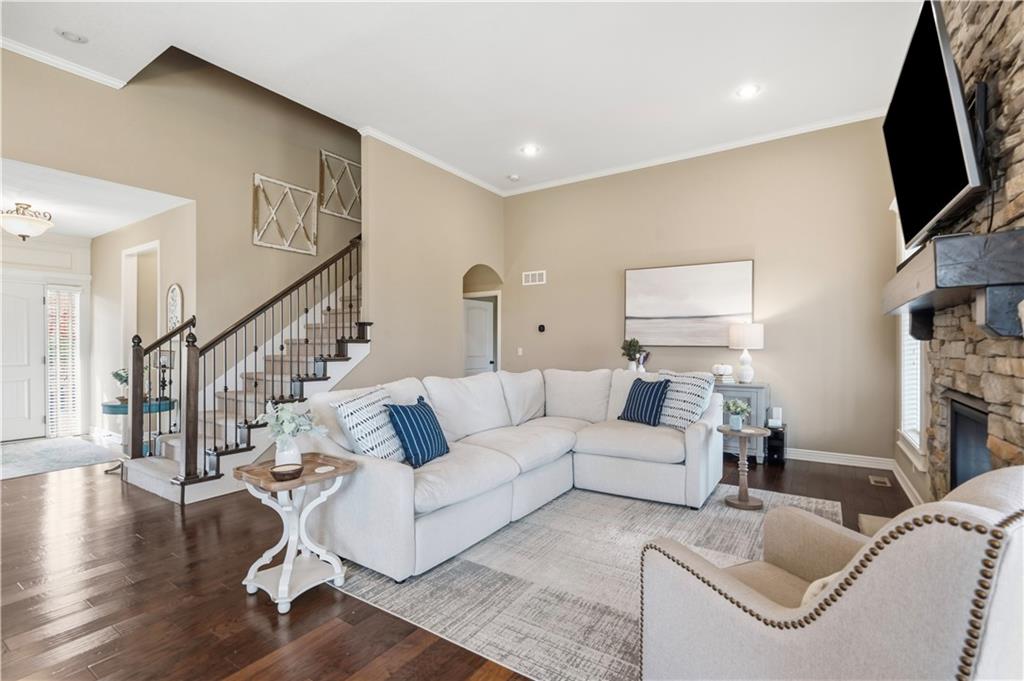 Schedule a showing today to see this beautiful 1.5 story plan in Falcon Valley featuring a spacious primary bedroom & bath on the main level. Also, on the main level you'll find the kitchen, vaulted great room w/see through fireplace, breakfast room, office, laundry, & all of this charm steps out onto a covered patio w/tons of beautiful landscaping to enjoy & relax within. Upstairs, there are (3) ample sized bedrooms w/2 full baths. In the lower level, you'll get to experience the comfortable ambience of the beautiful rec room w/Bar as well as a (5th) bedroom and 4th full bath. This home has been lovingly maintained and lived in by the original owners. Exterior was just painted, new carpeting on the stairs and in main level office. This gorgeous house sits upon a cul de sac lot w/access to the sidewalks for walking your dog or just taking a leisurely stroll. Great location in Lenexa. Close to highways, schools, dining and more.