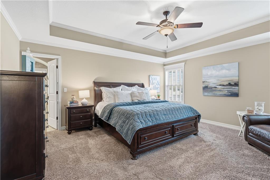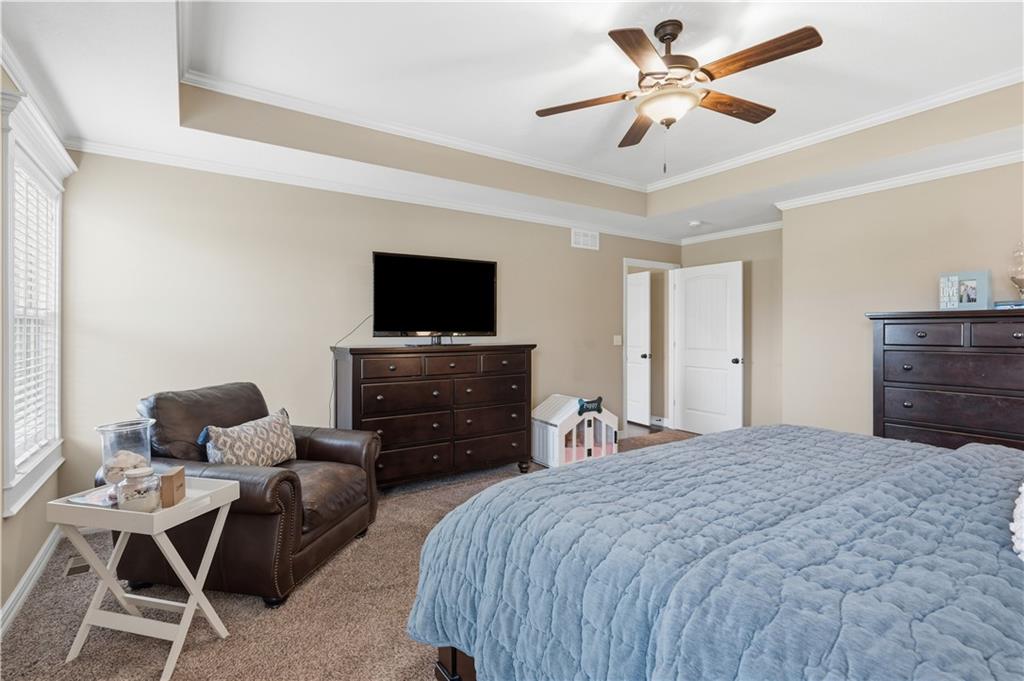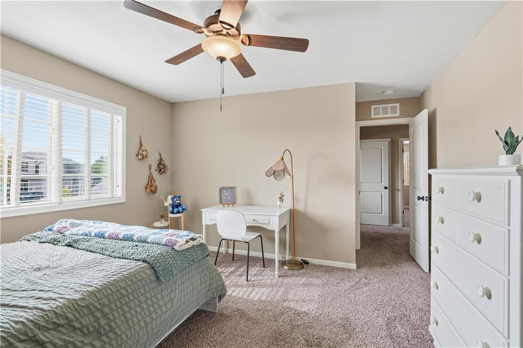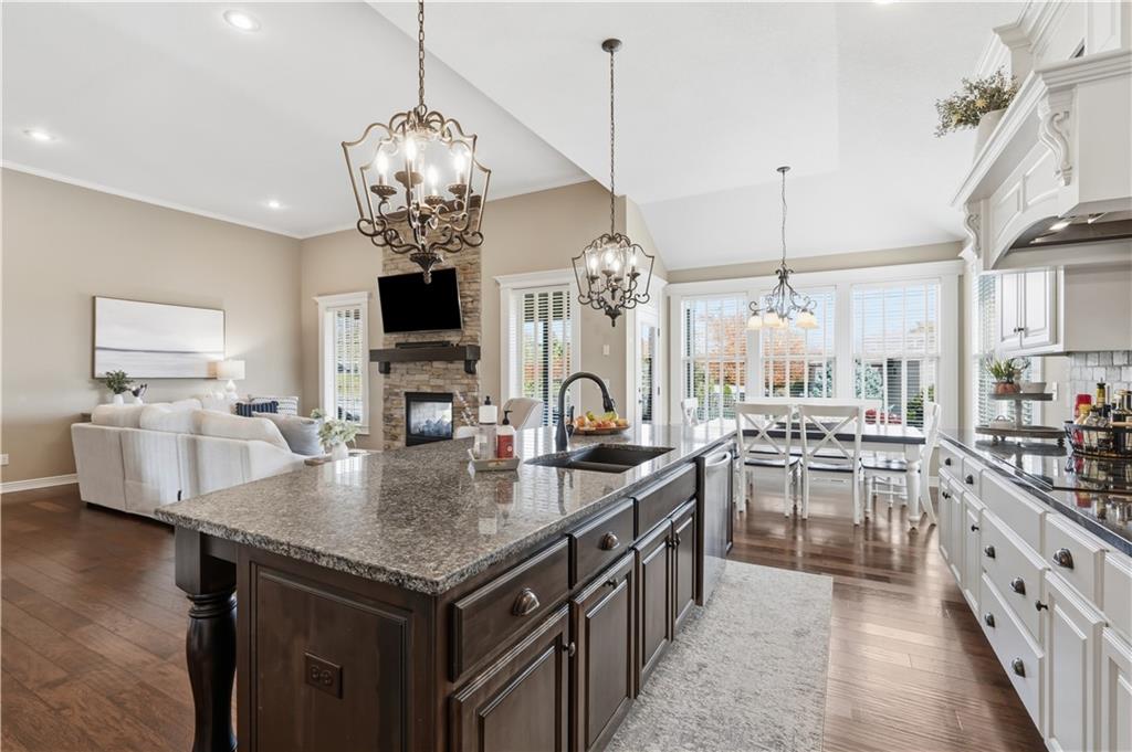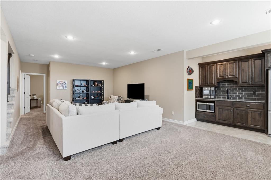 Schedule a showing today to see this beautiful 1.5 story plan in Falcon Valley featuring a spacious primary bedroom & bath on the main level. Also, on the main level you'll find the kitchen, vaulted great room w/see through fireplace, breakfast room, office, laundry, & all of this charm steps out onto a covered patio w/tons of beautiful landscaping to enjoy & relax within. Upstairs, there are (3) ample sized bedrooms w/2 full baths. In the lower level, you'll get to experience the comfortable ambience of the beautiful rec room w/Bar as well as a (5th) bedroom and 4th full bath. This home has been lovingly maintained and lived in by the original owners. Exterior was just painted, new carpeting on the stairs and in main level office. This gorgeous house sits upon a cul de sac lot w/access to the sidewalks for walking your dog or just taking a leisurely stroll. Great location in Lenexa. Close to highways, schools, dining and more.