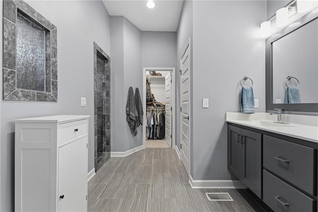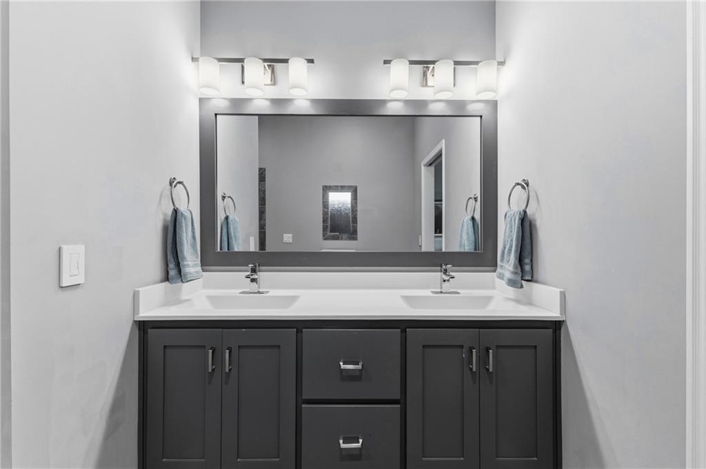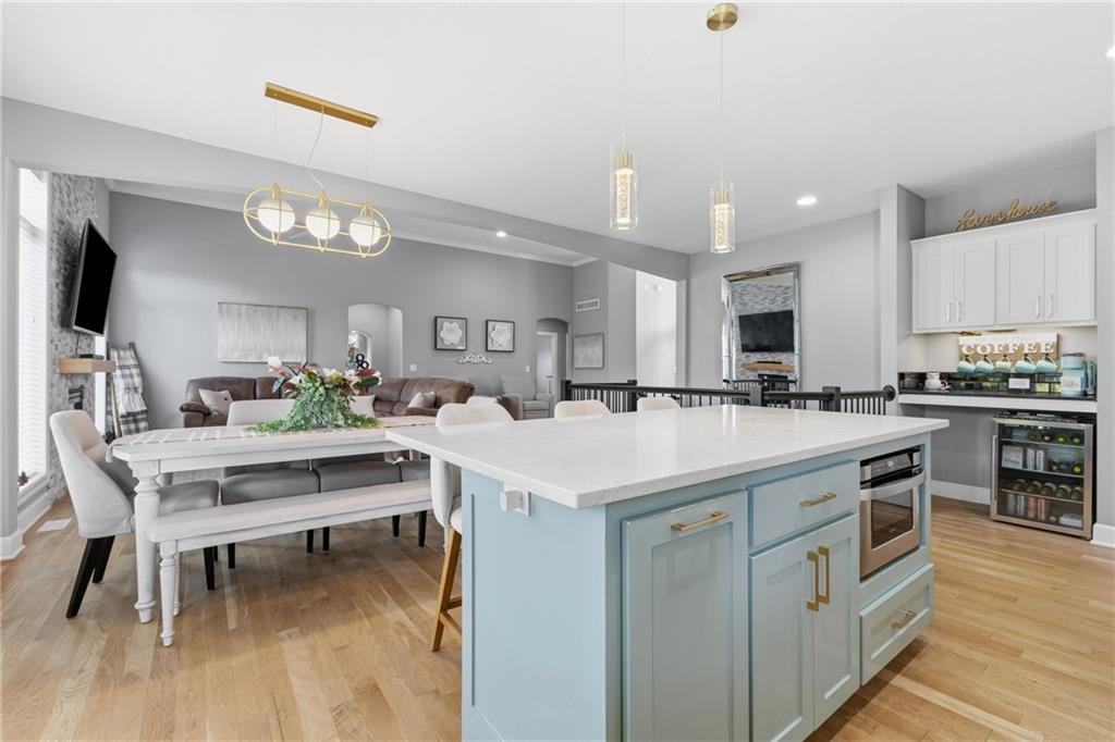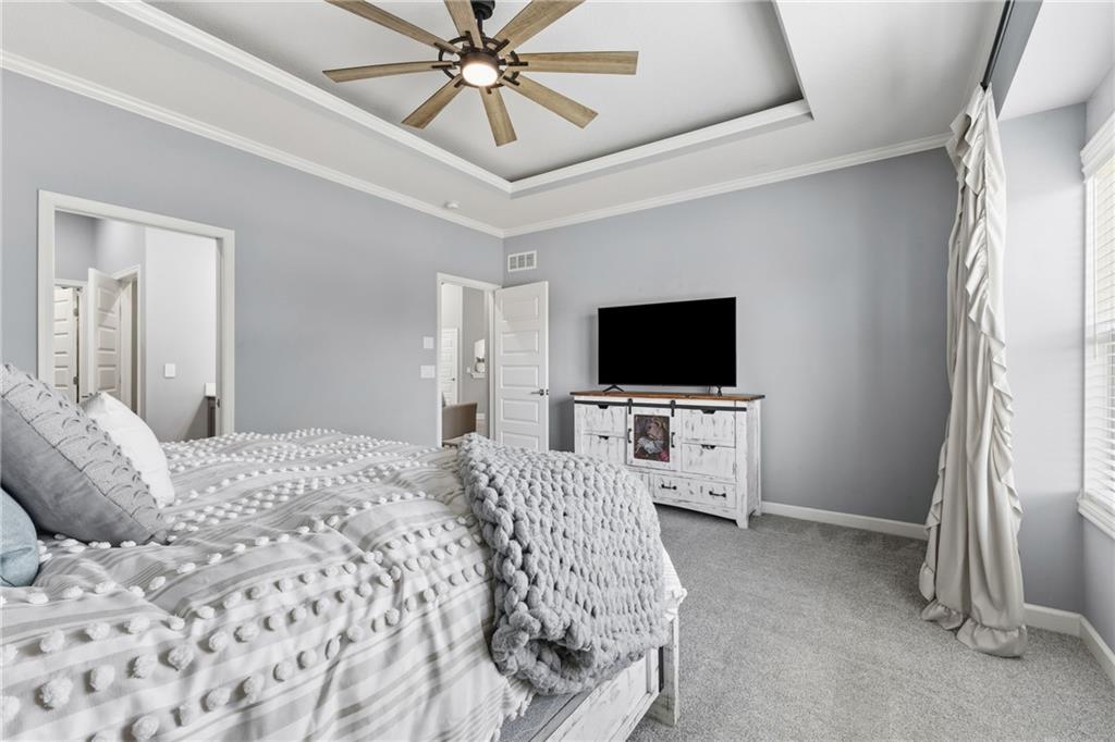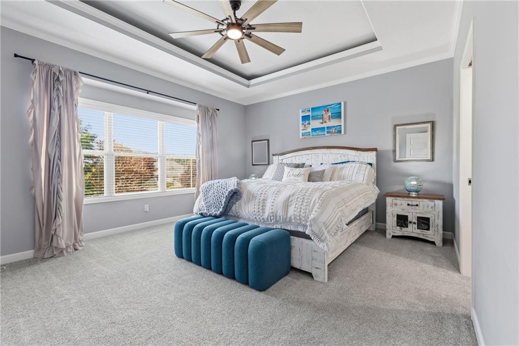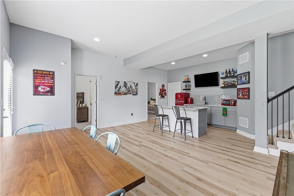 Welcome to this spacious home situated on a .47-acre cul-de-sac corner lot in the highly sought-after Staley Farms Subdivision. This home combines elegance and functionality with soaring ceilings, updated lighting throughout, and refinished hardwood floors. The exterior received fresh paint in 2022, new landscaping in 2025, updated front door and the main-level full bath has been beautifully remodeled. (new roof will be installed prior to closing) Enjoy your evenings and weekends catching games on the TV on covered back deck. The main level offers 3 bedrooms, including a luxurious master suite with a large two-headed shower and a walk-in closet. The finished basement features high ceilings 2 additional bedrooms with a Jack-and-Jill bath, a full bath off the family room, and a wet bar with an island for entertaining. Equipped with a 4th-car garage perfect for storage or a golf cart. Extra features include abundant storage and a built-in safe room ideal for valuables or shelter. Add a hot tub to the back porch, the home is already wired for it. Enjoy all the neighborhood amenities Staley Farms has to offer: a zero-entry pool, lap pool, gym, basketball and tennis courts, volleyball court, and a children’s play area. Perfect for family living and entertaining, this home offers comfort, style, and endless possibilities. (Golf membership is not included in HOA but can be purchased for an additional fee)