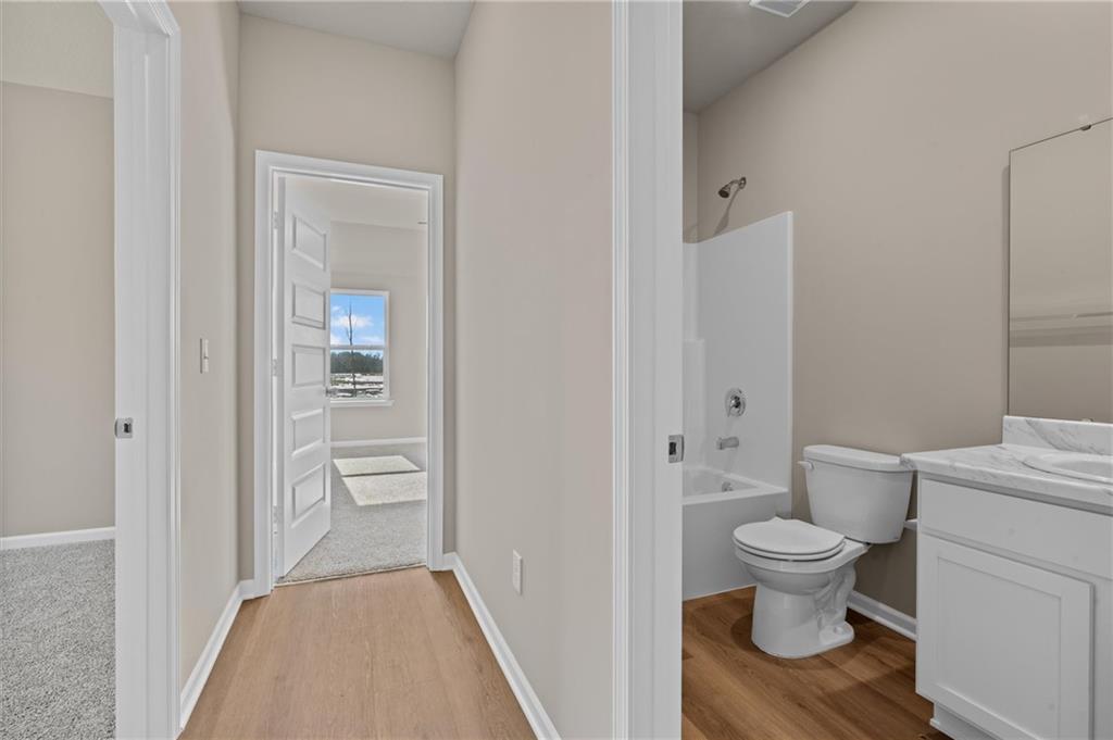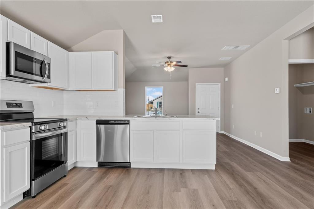 Welcome home to The Wright Plan! This beautifully designed 3-bedroom, 2-bath home offers comfortable, open-concept living on a slab foundation. The kitchen opens to the main living area, creating space for entertaining and everyday living. The primary suite includes a private bathroom with walk in shower. Two additional bedrooms and a full hall bath with a tub/shower combo. Luxury vinyl plank flooring flows throughout the main living areas, with cozy carpet in each bedroom. Enjoy outdoor living on the covered back porch. This new construction home combines style, functionality, and value.