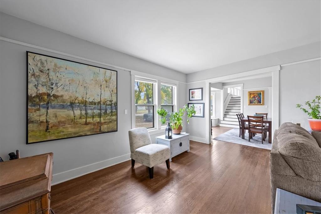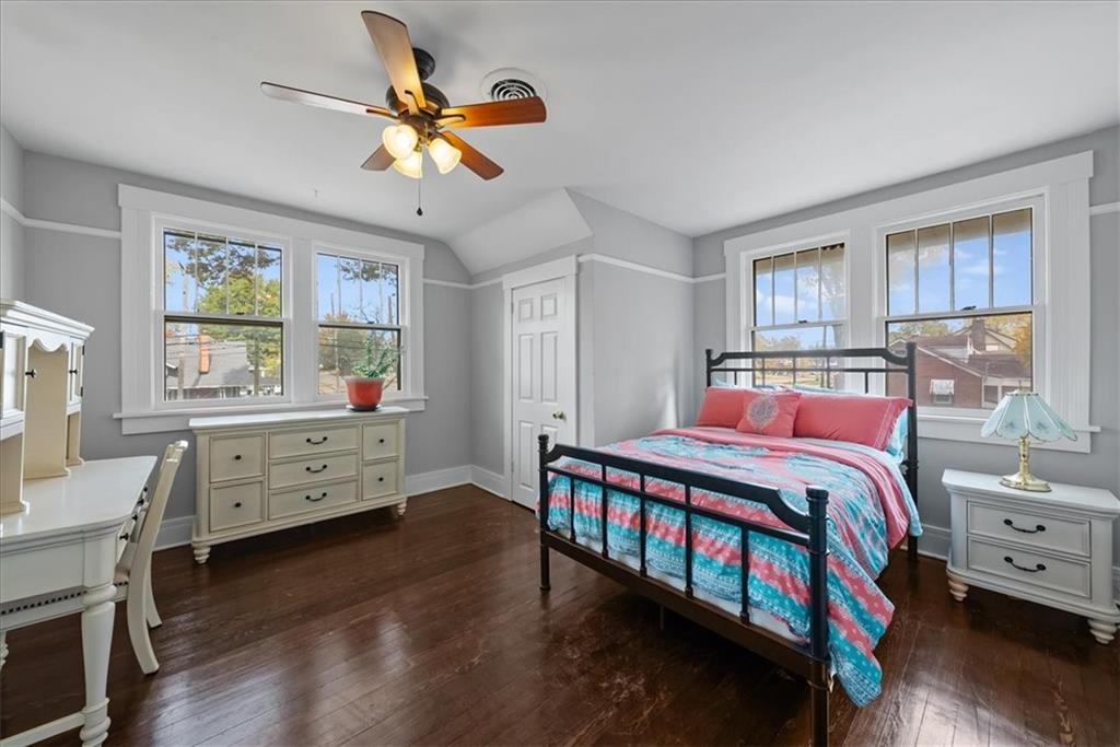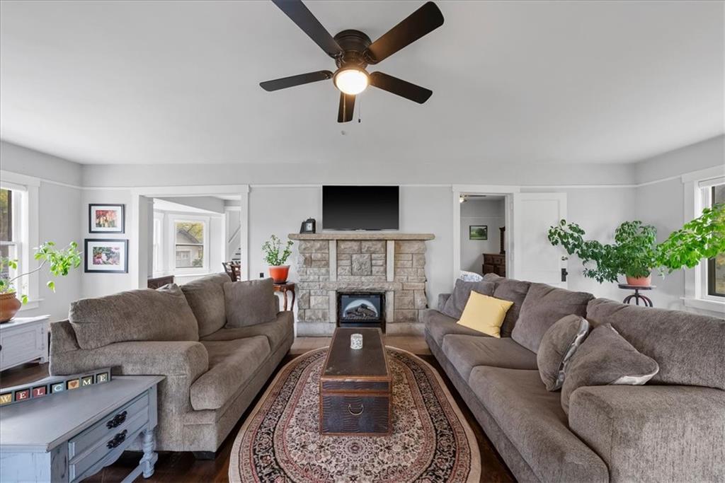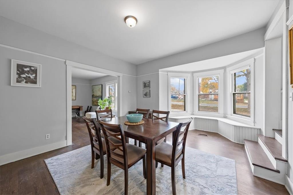 This delightfully charming 2-story home was built in 1900 and is located near Grandview's historic district, just blocks from downtown's shops and restaurants and offers easy highway access, just minutes away. Upon arrival, this spectacular 1.2 acre double lot impresses, with mature trees providing shade and a serene park-like setting (includes adjoining lot 803 High Grove). The detached garage offers parking, additional storage or a workshop space. On the exterior is a blend of modern convenience with the vinyl siding and a touch of vintage personality with scallop siding at the gables that honor the home's heritage. The sunroom in the front of the home is perfect for enjoying morning coffee or relaxing with a good book. The living room welcomes its guests with beautiful hardwood floors throughout and an electric fireplace for cozy ambiance. Flow into the dining room, which features a bay window seat and built-in buffet, ideal for entertaining. The kitchen, in the back of the home, opens to a breakfast nook for casual dining on one side and leads out into a closed in back porch area that gives conservatory energy with its many windows. Continue through the kitchen, past the powder room, to a potential primary bedroom, which offers up the convenience of single-floor living, complete with main-level laundry. Head upstairs from the dining to find four more spacious bedrooms with generous closets and tall ceilings that create an airy, open feel plus a full bathroom to serve any inhabitants needs. Picture rails provide an old-timey nostalgia as they preserve the walls. With a newer AC and excellent overall condition, this five-bedroom, 1.5 bathroom home has been lovingly maintained and is ready for its next chapter. Pre-inspections have been conducted with reports available upon request for buyers' peace of mind and seller's desire to sell in it's present condition.