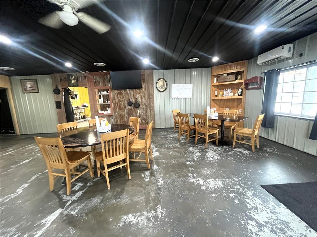 Turnkey Business Opportunity! Step into ownership with this fully equipped 4,320 sq ft commercial building, featuring two half baths, a complete kitchen, and a full-service bar. Designed with flexibility in mind, the building offers a sectionable dining area ideal for private events—or can be opened up to accommodate a lively dance venue. Located in a charming rural community, this property is perfectly positioned for entrepreneurs looking to capitalize on the upcoming hunting season and beyond. Opportunity is knocking—answer it today and kickstart your dream business!