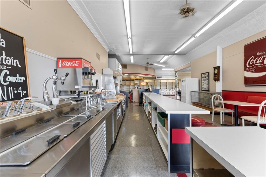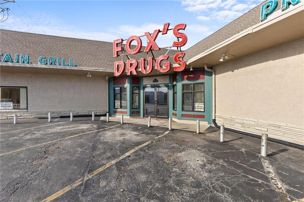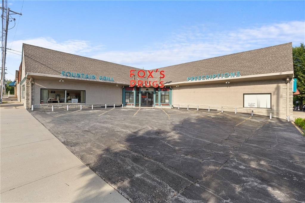 Discover a true Raytown treasure—the iconic Fox’s Drugs, a community staple since 1939, now available for sale on the bustling corner of Historic 63rd Street and Raytown Road. This prime 4-way intersection location offers unmatched visibility and 3,281 +/- approx. square feet of beautifully finished space, complete with a fully equipped pharmacy featuring drive-thru pick-up windows, extensive shelving, and a spacious stockroom. The charming retro soda fountain and diner area boasts vintage appliances, including a grill, refrigerators, service counters, storage containers, and a sink—perfect for reviving classic vibes or launching a fresh concept. With new 3-phase electrical and a newer roof, this move-in-ready gem is primed for your vision. Preserve its rich legacy, ignite a new business the community will adore, and own a piece of Raytown history!