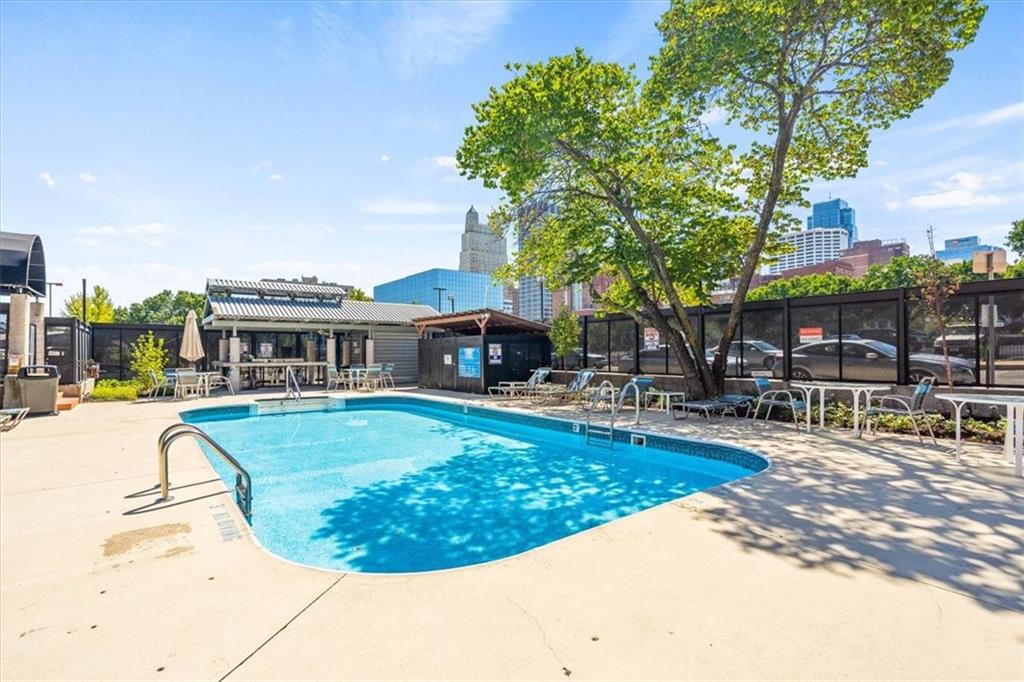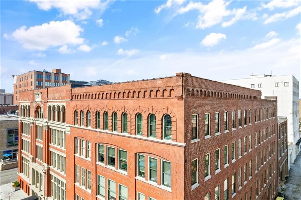 Modern amenities, 3rd-floor views, plus the entire downtown scene as your playground! This adorable condo packs big style, authentic urban accents, and a whole lot of charisma into a historic 1800s building conveniently located between the River Market and the P&L District. We are talking light, height, and exposed elements: brick, timber beams, piping, and a polished tongue-and-groove ceiling, all of which play perfectly against the sharp upgrades and the Brazilian Walnut floors that flow throughout. While the vibe leans industrial, it still feels warm and sophisticated. The elevated living area is comfortable with city views and a cozy gas fireplace. The bedroom is inviting, with ample closet space, and the bathroom is sleek and relaxing, featuring a jacuzzi tub and a Rain Shower Head. The kitchen impresses with stainless steel appliances, granite countertops, a stylish backsplash, custom cabinetry, and a functional breakfast bar island with a cooktop. A nearby alcove creates the perfect spot for a home office. Furthermore, you have the benefit of an in-unit washer and dryer, a gated surface parking spot, and a storage locker. Residents can take advantage of an array of amenities, including a sauna, hot tub, pool, gym, tanning bed, media room, kitchen, club room, theater, bike rack, and meeting center. The grand staircase and preserved domed ceiling pay homage to the building's historic roots, adding a touch of timeless elegance. Great layout, fantastic perks, and day or night, you can eat, drink, shop, or play thanks to the nearby streetcar and all the surrounding venues. Don't miss your chance to own a piece of history and live that downtown lifestyle you've dreamt about.