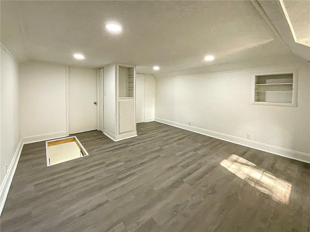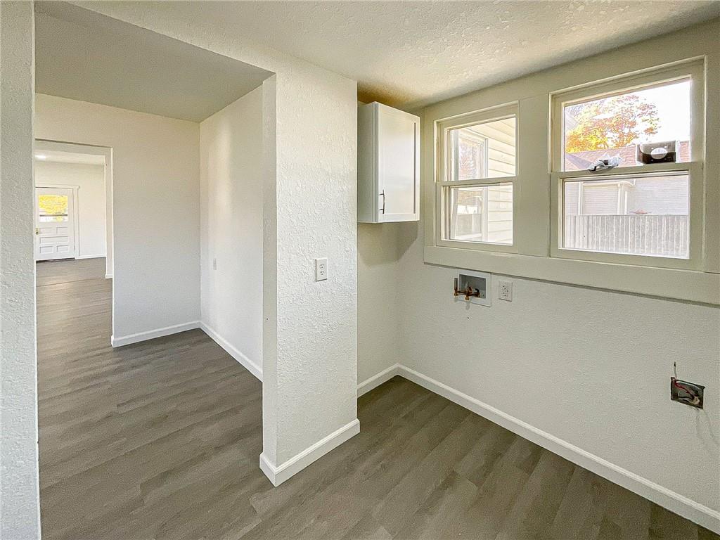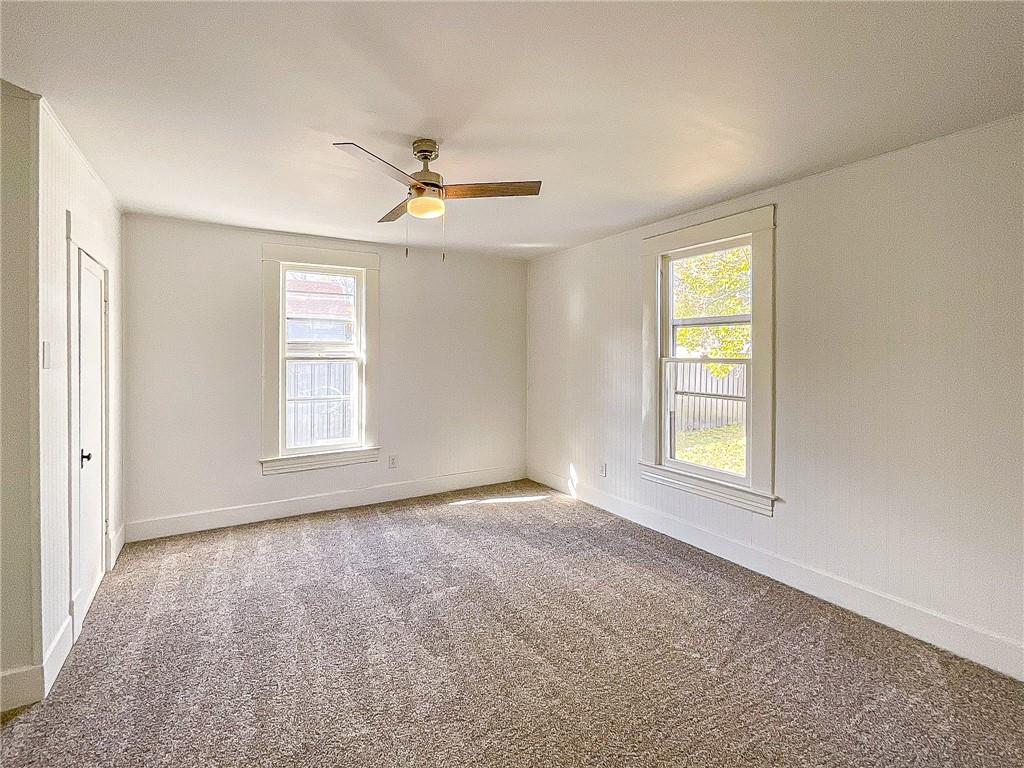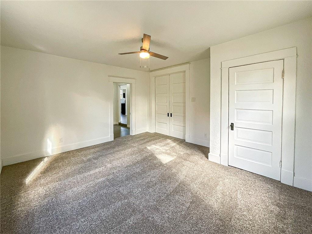 Renovated home sitting on a double lot!! New covered Front porch, Large living room with picture window and built ins. Formal Dining room and all new kitchen with oven/range, dishwasher and built in microwave. 2 bedrooms, both with ceiling fans. New bathroom with tiled tub/shower. All new wiring, plumbing, flooring, fresh paint and fixtures throughout the house. Finished attic space, great for storage or bonus room. Central heating and cooling system, maintenance free vinyl siding. 1 Car detached garage and alley access.