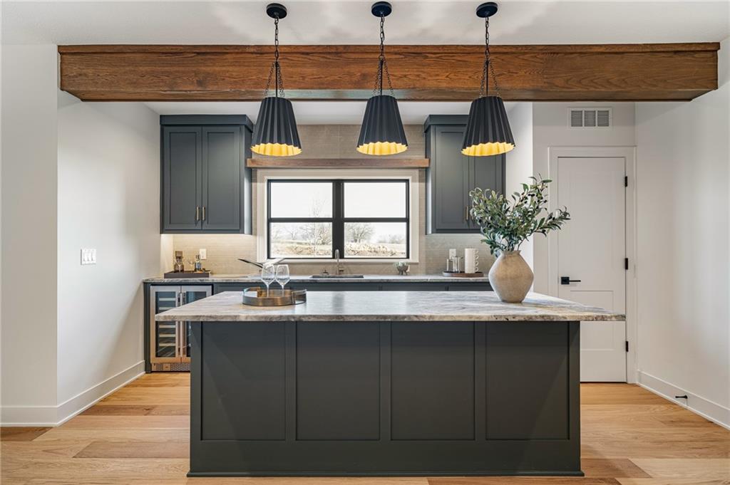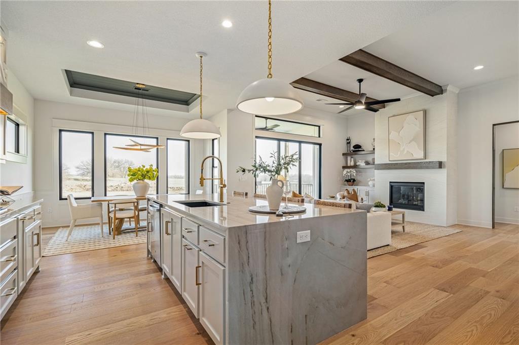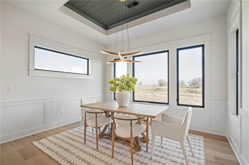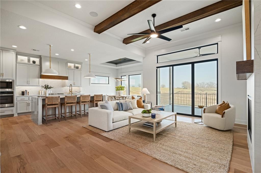 Hilmann Home Building is showcasing their exceptional Newport Rev. 1.5 sty. plan in Prairie Canyon, Johnson Counties newest maintenance provided community conveniently located just west of K-7 Hwy. off of College Blvd.! Stunning bright white, modern farmhouse front elevation w/cupola, backing east to greenspace with long valley vista's. Open concept Great rm/Kitchen & Dining w/huge island & walk-in pantry. Beautiful Primary suite and versatile Guest rm./Den on the main floor. Walkout LL features 2 generous bedrooms w/share bath, Family rm. w/FP, Rec rm space, wet bar & powder room. Covered deck off the main floor & co=vered patio off the lower level. Model home should be ready for public viewing in mid December, elegantly appointed thru-out, you won't want to miss this show-stopper by Hilmann Home Building! !