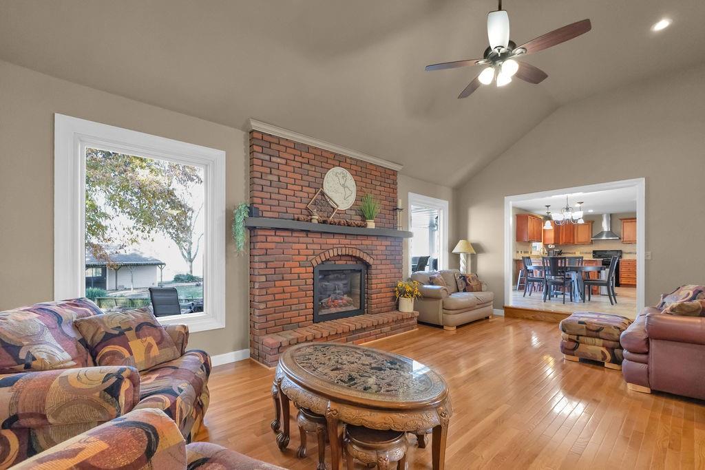 Welcome to your perfect country retreat just minutes from town! This spacious 5-bedroom, 3-bathroom home sits on a large, scenic lot with sweeping country views and the peaceful setting you’ve been looking for—all while staying conveniently close to local amenities. The main level features gleaming hardwood floors, a warm and inviting living room with a fireplace, and a beautifully appointed custom kitchen complete with granite countertops and custom cabinetry. The large master suite offers two generous closets, a relaxing soaking tub, and an oversized walk-in shower with a built-in seat. Downstairs, the full finished basement provides incredible flexibility with a second full kitchen, a spacious family room with its own fireplace, and plenty of room for guests, multigenerational living, or entertaining. Storage is abundant thanks to numerous large closets throughout the home. Outside, the opportunities are endless—enjoy the expansive yard with apple, pear and peach trees, a 40x50 outbuilding with two garage doors perfect for hobbies or equipment, and a charming backyard casita that could serve as a future pool house, guest quarters, office, or creative studio. This property combines country charm, modern comfort, and unmatched versatility. A rare find—come experience it for yourself!
