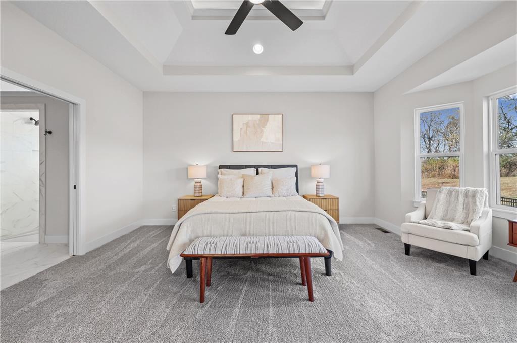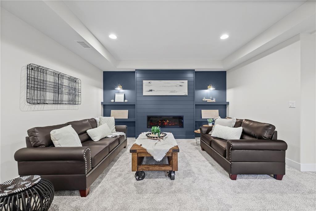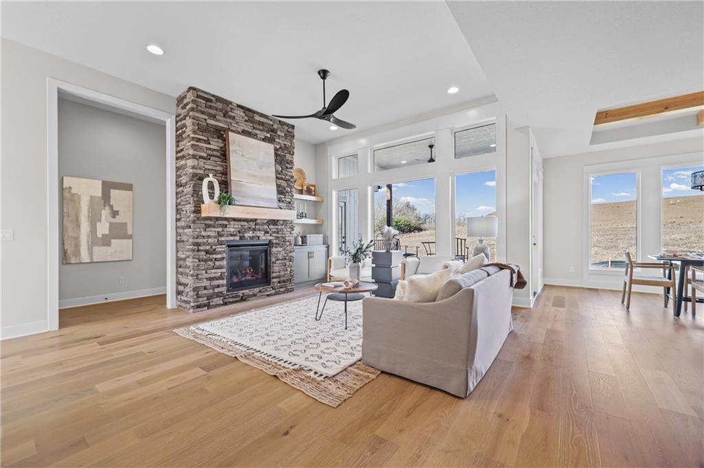 Exceptional Quality and beautifully designed & built for long-term livability! This exceptional home offers high-end craftsmanship, thoughtful accessibility features & beautiful designer finishes throughout. Located in the highly rated Lee’s Summit School District, it's just a short walk to the neighborhood elementary & only minutes from LSW High School! A rare find in today’s market, this home offers true ZERO ENTRY access, providing step-free transitions inside for enhanced ADA accessibility, long-term comfort & effortless first floor living. An ENERGY STAR 3.1 rating delivers superior insulation, energy efficient windows & HVAC system=improved indoor comfort & lower utility bills! Outside: beautiful board & batten siding w/stone accents, cedar trusses & covered front entry. Inside: classic-modern design makes a striking first impression w/soaring ceilings, rich engineered wood floors & an open, airy layout. The foyer features a stunning wood-accent barrel ceiling & custom wall trim that sets an elevated tone. Impressive floor-to-ceiling stone fireplace graces the family room & a wall of windows drench the main level in natural light, contributing to the seamless flow into the kitchen & dining area. The designer kitchen is a true showstopper, oversized quartz island & premium custom cabinets that perfectly complement the wood accent range hood. A gas cooktop & stainless appliances=chef's delight, w/a walk-in pantry providing super storage space for grocery staples. The primary suite is a true retreat, featuring a spacious bedroom w/tray ceiling & large windows plus a spa-like bath w/dual vanities & an oversized walk-in tile shower. A large secondary bedroom, full bathroom, a pocket office & spacious laundry room round out the main floor. Downstairs, you'll find a large WOW FACTOR Rec Room w/floor to ceiling fireplace, a gaming area, wet bar, 2 additional spacious bedrooms serviced by a 3rd full bathroom & a 1/2 bath (with urinal!) - perfect for poker night!