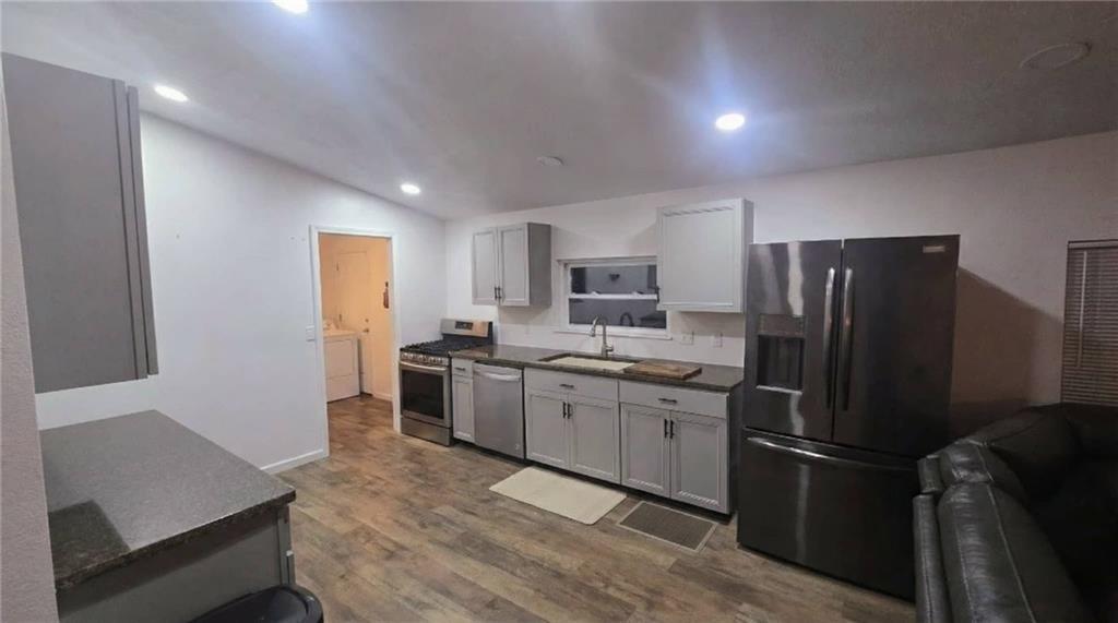 DARLING HOME! 3 Bedroom / 2 bath. Ranch style home on a 100'x300' lot (4 city lots total) Open floor plan* Spacious Livingroom /Dining room. Nice Kitchen with plenty of Cabinet space with Concrete Counter Tops* Kitchen appliances stay. Large Master bedroom with walk-in closet. Detached 2 Car Garage with concrete floor. Large backyard includes an 8'x8' shed with a partially fenced in area.