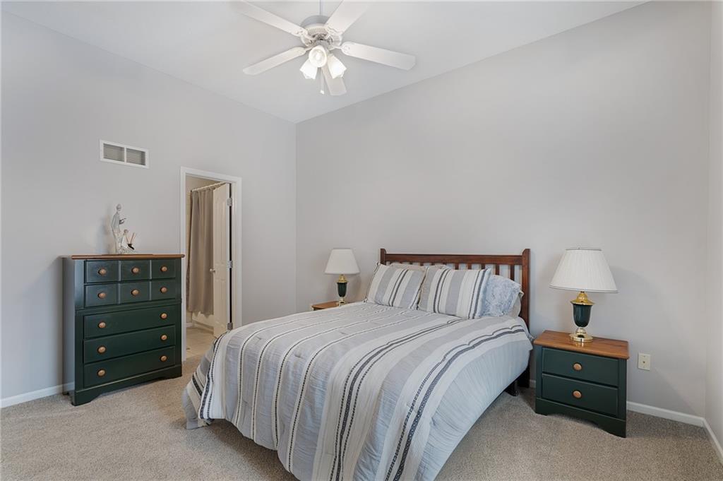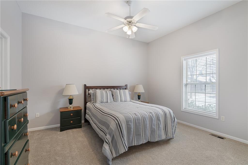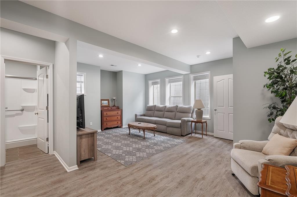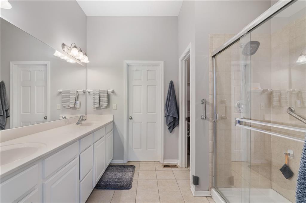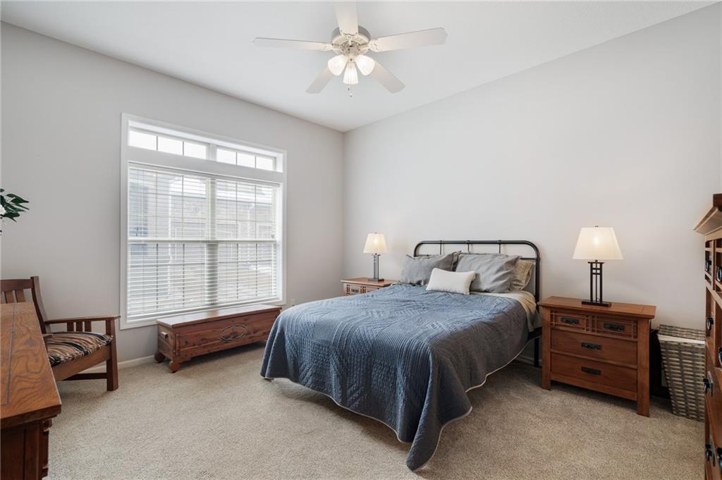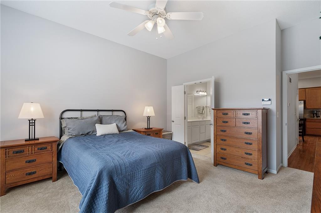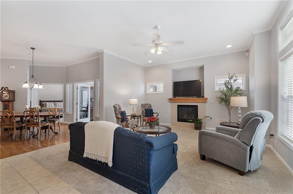 Welcome to this updated, maintenance-free villa offering space, comfort, and an incredibly easy lifestyle. With three large bedrooms, each with its own private bathroom, you’ll find privacy and convenience throughout. The main-floor primary suite is a true highlight, featuring a huge walk-in closet and a generous en-suite bath. Fresh interior paint and new carpet (2025) make the home feel clean and move-in ready. The main level includes a bright living area with a beautiful fireplace, dining space, and a functional kitchen with ample storage. The finished basement expands your living options with a full second living area, an additional bedroom suite with a walk-in closet, and excellent storage. Step outside to a private patio with nearby green space, perfect for relaxing. This home is also just steps from the community clubhouse, offering added convenience and amenities right at your doorstep. The HOA covers lawn care, snow removal, exterior maintenance, and more, creating true lock-and-leave living. All in a prime Olathe location close to shopping, restaurants, parks, and highway access.