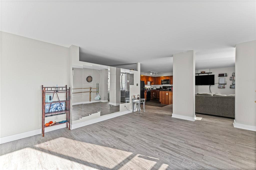 Rare opportunity to own a beautiful and spacious two unit condo converted into one mindfully oriented space filled with natural light and cityscape views! The open and social floorplan is perfect for hosting friends and family. The kitchen features rich stone counters, a large breakfast bar, and a hearth or formal dining space option! Hurry up while this building is undergoing radical improvements and before prices are poised to soar! The Metropolitan offers one of the most comprehensive amenity packages in the city while offering extremely affordable HOA dues. This prized location is within walking distance to River Market, street car, and some of Kansas City's most desirable restaurants and social scenes. A storage unit and TWO secure parking spaces are included! Indulge in the building’s rooftop pool and sauna (currently undergoing a stunning renovation and upgrade), a fitness center built to accommodate you at every level of your fitness journey, a front desk concierge, a business center with conference room and free printing/scanning, event space, and the peace of mind of a secured building and parking garage. A perfect home and hub for maintenance free living and quick access to KC’s prospering downtown!