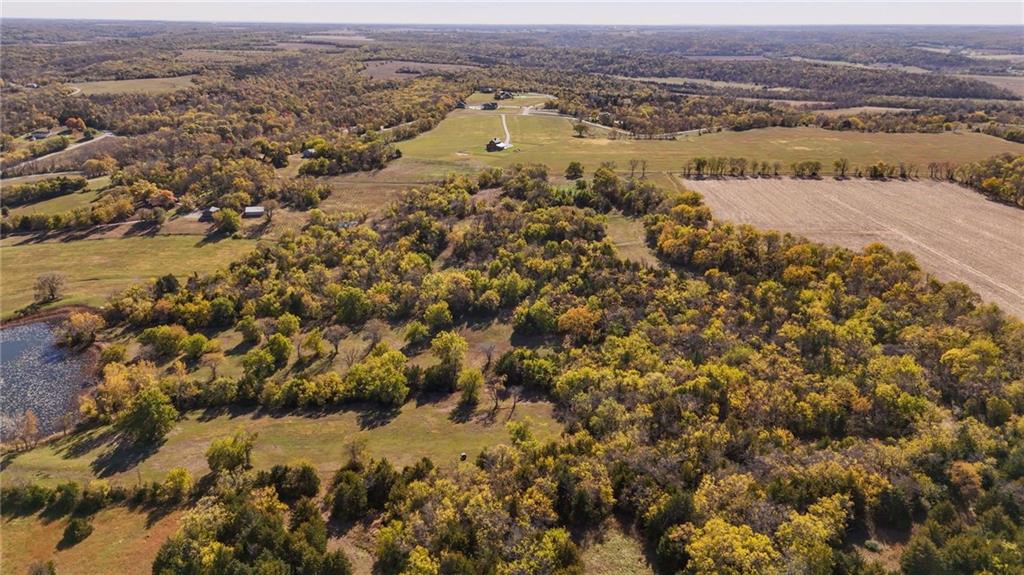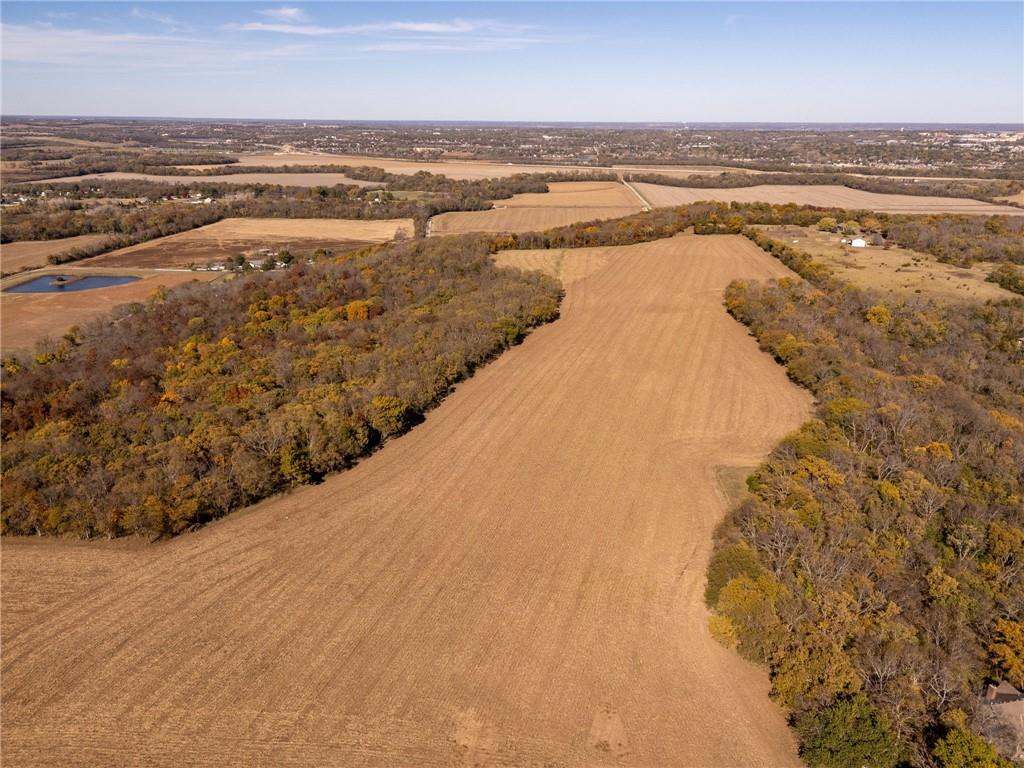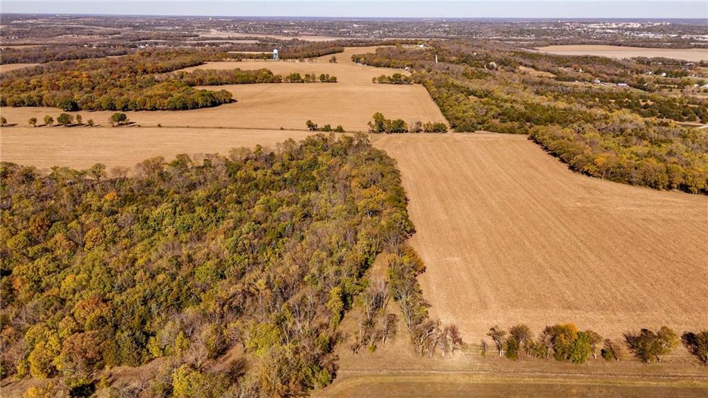 This 395.5-acre property offers rare contiguous acreage on all paved roads in Wakarusa Township, just a mile and a half from the K-10 bypass and only minutes from Lawrence, making it an excellent location for new home development. The property is made up of four individually surveyed tracts: 95.5 acres m/l on N 1100 Road, 76.2 acres m/l on N 1100 Road, 81.5 acres m/l on E 1200 Road, and 142.3 acres m/l on E 1200 Road. It sits in a prime area for outdoor recreation, with abundant wildlife (especially deer and turkey) and strong potential for future hunting leases. Five spring-fed ponds, mature hardwood timber, and a high bluff with sweeping views to the north and west overlooking Clinton Lake make this a standout setting for anyone who values both privacy and natural beauty. The land also offers approximately 160 acres of tillable ground, approximately 40 acres of pasture, and 200 acres of timber, along with fencing, cross-fencing, and two RWD #5 water meters to support a variety of agricultural uses. With its mix of productive ground, rich habitat, and exceptional access, this property blends recreation, versatility, and convenience in one close-to-town location