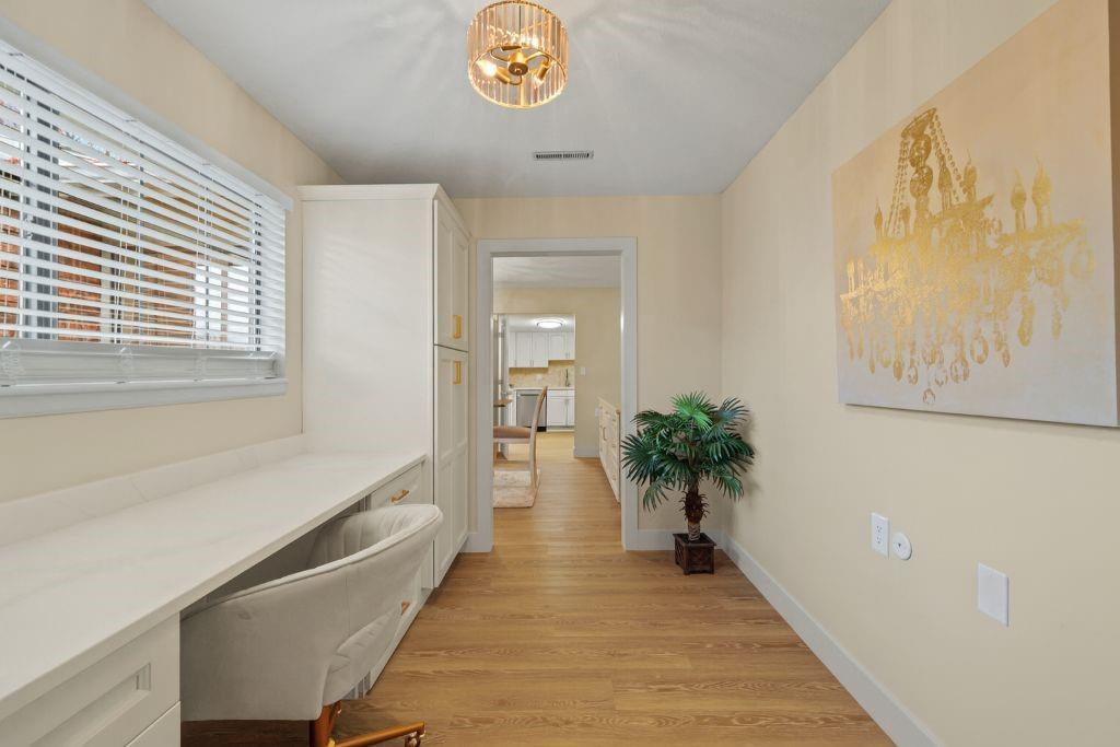 Welcome to stress-free living in the 55+ Foxwood Springs community in Raymore, MO. This beautifully remodeled home features all-new LVP flooring, baseboard trim, lighting, textured ceilings, fresh paint, updated faucets, quartz countertops, window treatments, custom cabinets, and custom closet shelving. The spacious dining room includes a built-in buffet and cabinets, and a new home office with built-in desk overlooks a large window. The kitchen offers new stainless appliances, updated cabinets, new walk-in pantry, quartz counters, and backsplash. The living room includes a new electric fireplace with remote for year-round comfort. Popcorn ceilings removed, new doors, new landscaping, and more. Enjoy maintenance-provided living with HOA services that include 24-hour security, emergency response, lawn care, snow removal, trash, exterior and interior maintenance, and utilities (water/sewer). A one-time $3,000 access fee provides use of community amenities including indoor pool, fitness center, library, lounges, meeting rooms, billiards, shuffleboard, garden plots, greenhouse, picnic area, and on-site dining, with optional housekeeping and transportation services. Experience the perfect blend of independence and community—truly a wonderful place to call home.
