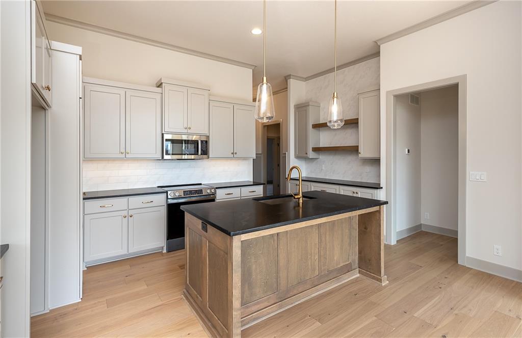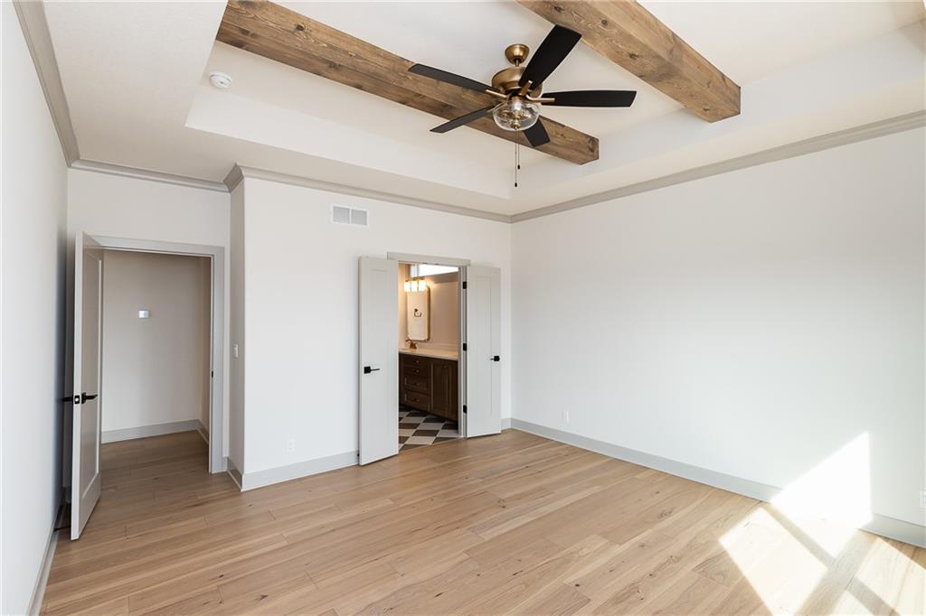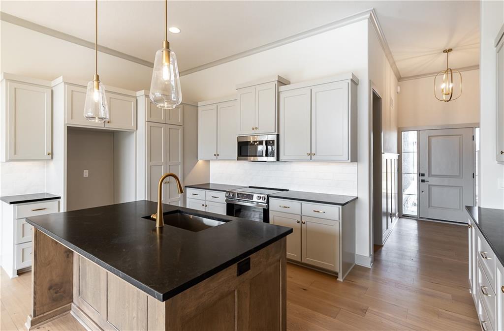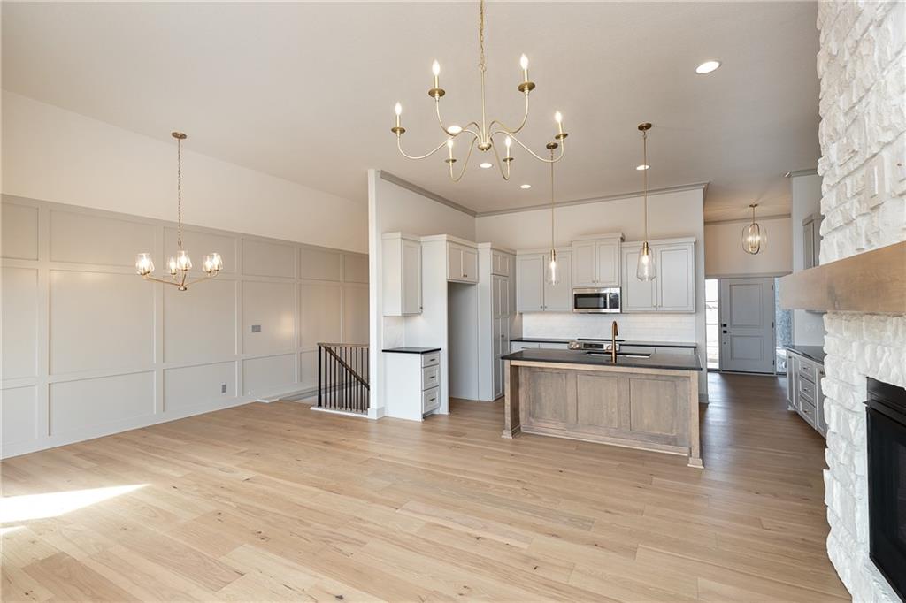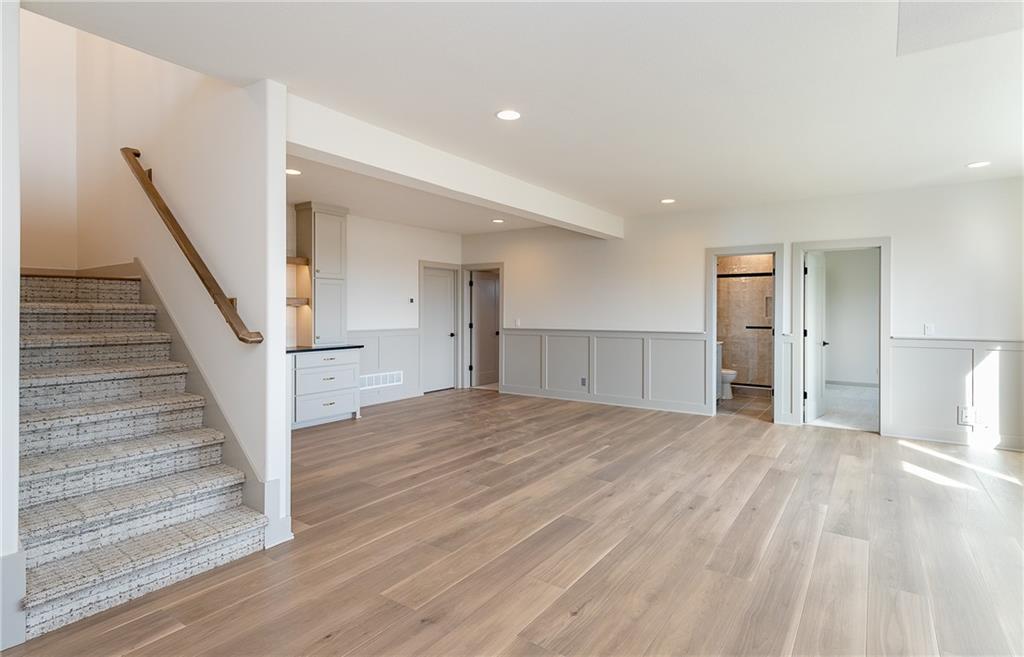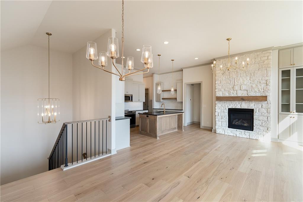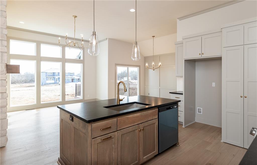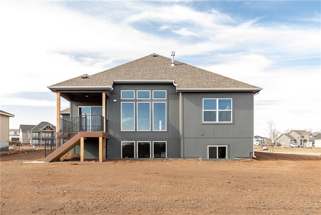 MOVE IN READY! Welcome to this fantastic Reverse 1.5-Story Sonoma Plan by SAB Homes in Southern Meadows! This home sits on lot 66 in Overland Park’s newest premier community. This beautiful 4-bedroom, 3-bath reverse 1.5-story offers the perfect blend of designer style, functional layout, and modern comfort. Step inside to an open, airy main level featuring tall ceilings, a hidden staircase, and large windows that flood the living space with natural light. The chef’s kitchen boasts abundant cabinetry, a spacious island overlooking the main living area, and high-end finishes throughout. A convenient mudroom sits just off the 3 car garage entry. Relax outdoors on the covered deck with ideal evening shade, overlooking the large corner lot. The finished daylight lower level provides even more living space, including two additional bedrooms, a full bath, generous recreation area, and a fantastic walk-up bar perfect for entertaining. This stunning home brings together thoughtful design, added trim detail, premium craftsmanship, and a highly sought-after location in Southern Meadows. A must-see!