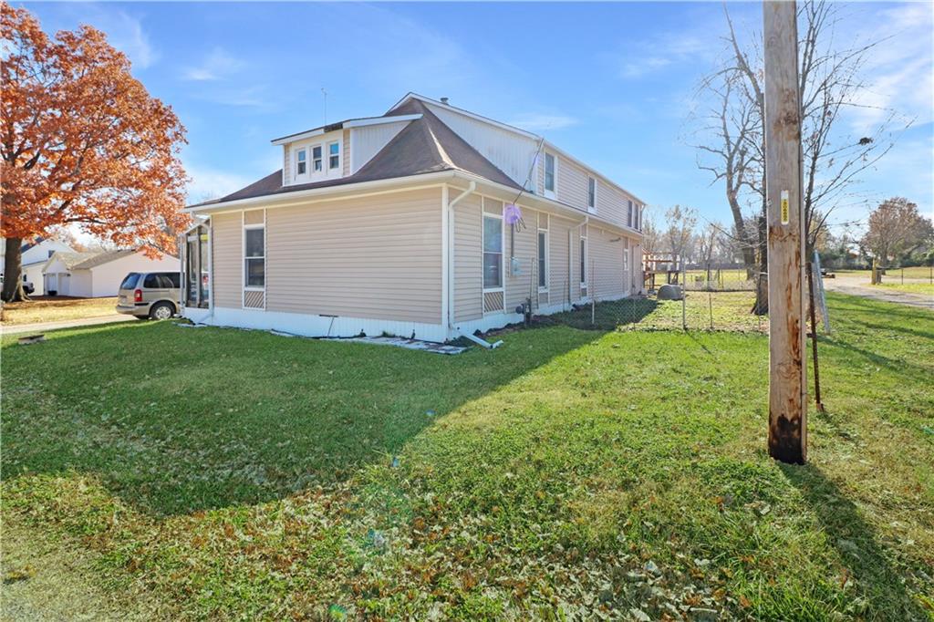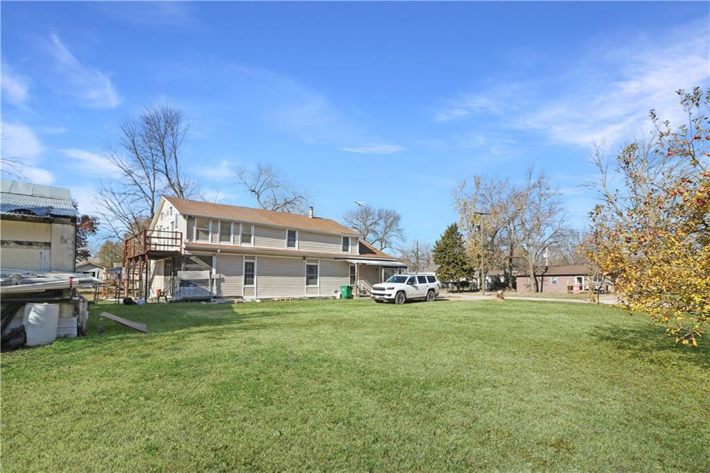 Discover an exceptional opportunity in a rural area close to Kansas City! This spacious 4-bedroom, 3-bath home sits on a large .36+/- acre lot, offering both space and seclusion. The enormous second story presents a blank canvas for an independent living suite or income-generating rental, complete with a private upper deck and ground-level stairs. The beautiful yard features mature apple and pecan trees and a partially fenced area perfect for pets or play. A versatile outbuilding provides ideal space for a workshop, extra storage, or parking. This is more than just a home; it's an investment for future income! Call today for your private showing.