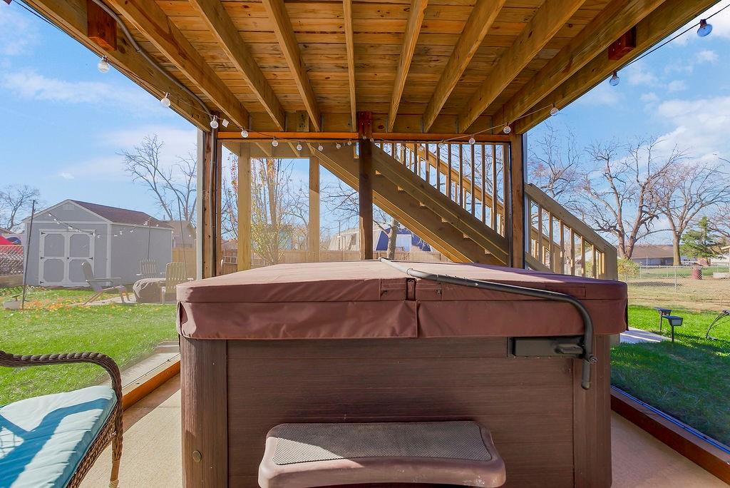 Don’t miss out on this better than new 2-year-old, two-story home in Gardner Lake. 4 bedrooms, 2.5 bathrooms, finished walk out basement, fenced yard, RV/Boat parking, covered and screened deck, 3 car garage and the list goes on. The finished walkout basement provides an ideal family or entertainment room. The backyard is like your own private retreat with a fenced yard to relax or get that firepit going with the family. Also, there is plenty of space in the storage shed and right next to it there is a dedicated RV/boat parking. The hot tub (only one year old and staying with the home!) adds an extra touch of luxury and relaxation. No HOA. With its prime location in Gardner Lake (second tier) and its impressive list of amenities, this nearly new home is a rare find. Minutes from Gardner, Olathe, and main highways, this home is move-in ready and built for both comfort and entertainment, don’t miss your chance to make it yours!