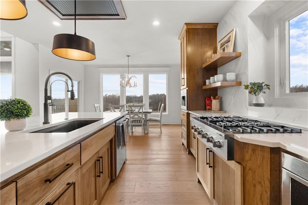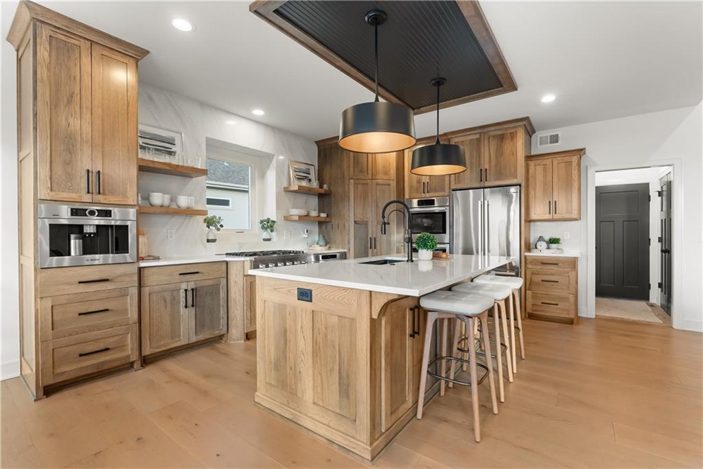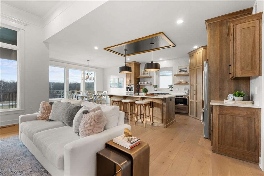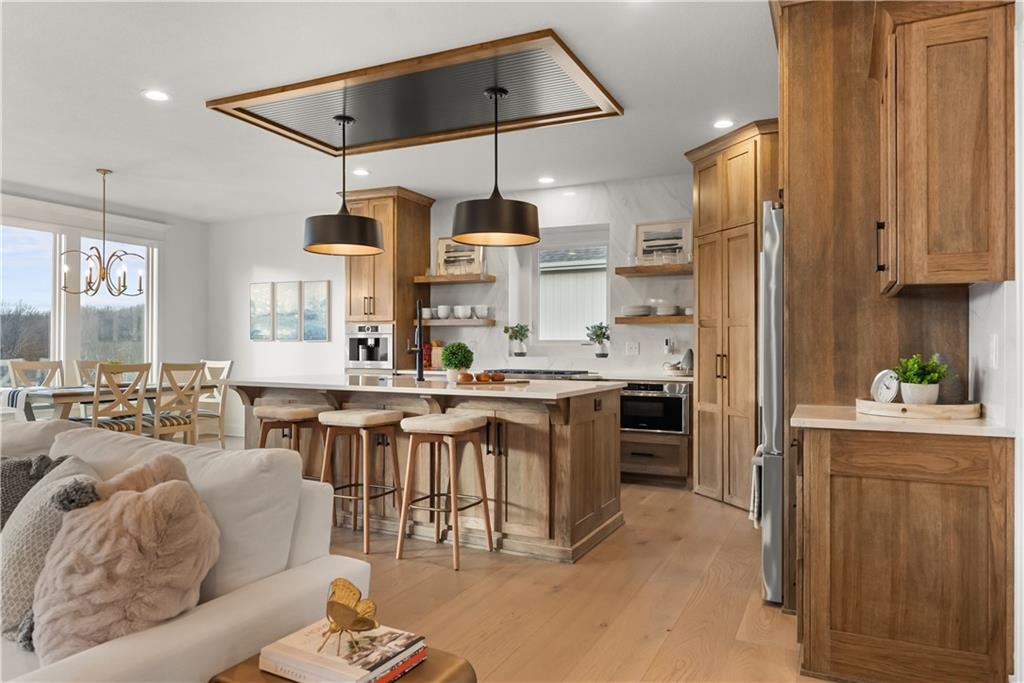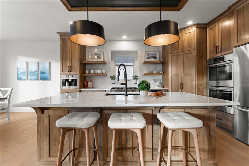 Welcome to a truly special home in highly sought-after Riverstone neighborhood in the Park Hill school district where exceptional design, thoughtful upgrades, and an award-winning build come together in one incredible package. Originally crafted by Patriot Homes as the St. Jude Dream Home Giveaway Home, this reverse 1.5-story residence stands out from anything else on the market. Every detail from the flooring and cabinetry to the fixtures, appliances, and trim was intentionally elevated to showcase the very best. All premium appliances, including the washer and dryer, stay with the home.Step inside to an inviting open-concept main level featuring soaring ceilings, a generous dining area, and a large kitchen island perfect for gathering. The kitchen shines with abundant cabinetry, upgraded finishes, and a spacious walk-in pantry offering ideal storage. Two bedrooms on the main level include a beautifully appointed primary suite.The lower level is made for entertaining, offering a fantastic rec room and a stylish wet bar. You’ll also find a third bedroom and a fourth non-conforming bedroom currently used as a pool-table room easily converted back if desired. The layout provides flexibility for guests, kids, hobbies, or future needs. Located in one of the most desirable school districts in Kansas City, this home offers not only luxury and convenience but also an incredible sense of community and pride of ownership.If you’ve been waiting for a home that delivers craftsmanship, comfort, and a meaningful story this is the one.