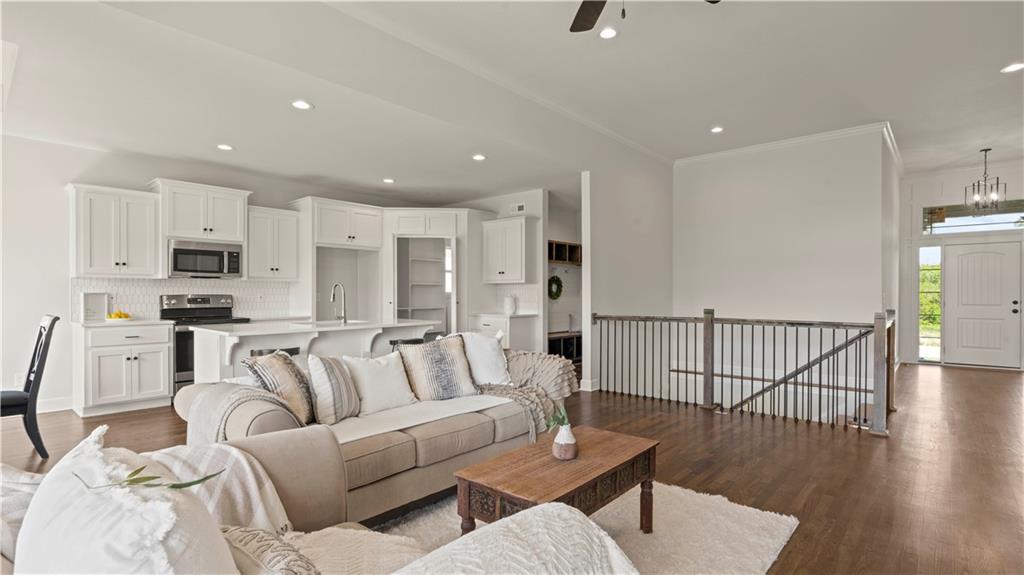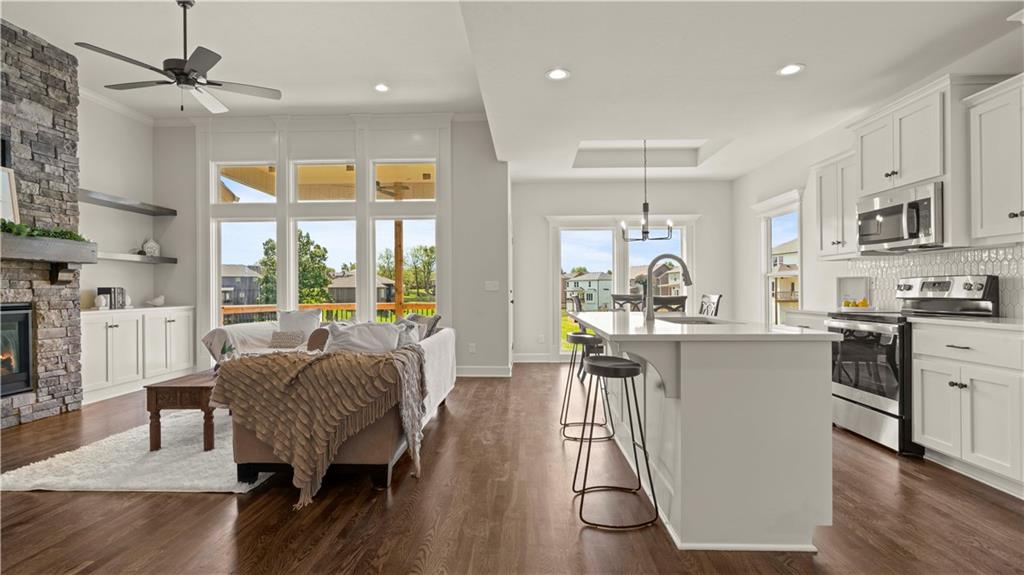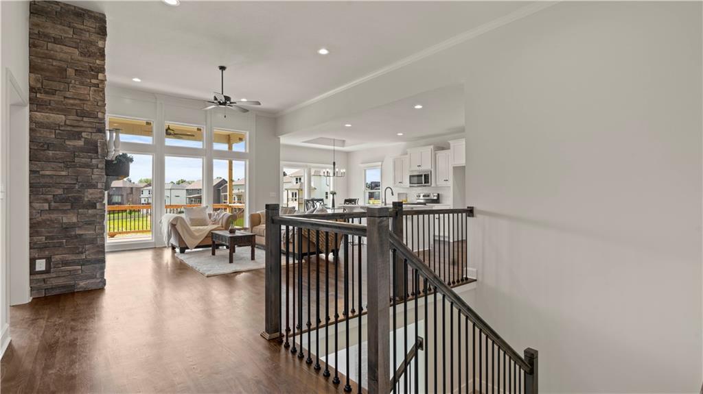 **ALMOST COMPLETED**BEAUTIFUL LOT BACKING TO TREES! Introducing the "TAYA" by Robertson Construction! This Custom Reverse 1.5-Story sits on one of the most desirable lots you will find! Enjoy the peace and privacy from the Covered Deck and Patio at the Walkout Basement. Stunning 4 Bedroom, 3.5 Bath with an Open Layout and Floor to Ceiling Windows. The Main Level features Engineered Hardwood Flooring, Stone Fireplace accented with Floating Shelves and Built-in Cabinets, Kitchen Island, Quartz Countertops, HUGE WALK-IN PANTRY, Custom Cabinets and Drop Zone at Garage entry. Easy access to the OVERSIZED Deck from both the Breakfast Room and Master Suite which has a Walk-In Closet that conveniently connects to the Laundry Room. Also on the Main Level is a half bath and Bedroom 2 with an ensuite bathroom making it a cozy guest room or home office. The Lower Level is just as impressive with a HUGE Family Room, more Floor to Ceiling Windows, 2 more bedrooms, 1 Full Bath and a good amount of storage! Located in the highly-rated Kearney School District. Close to local amenities!