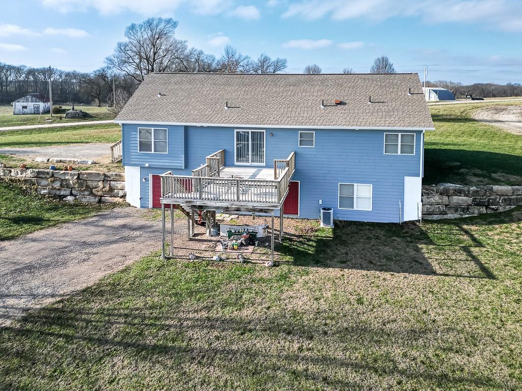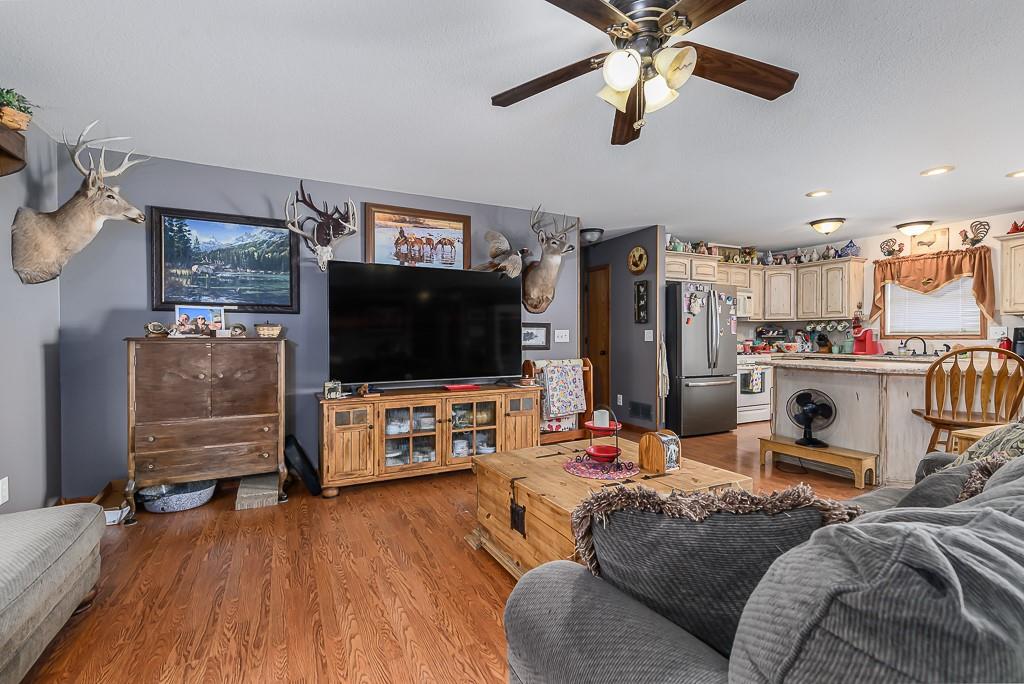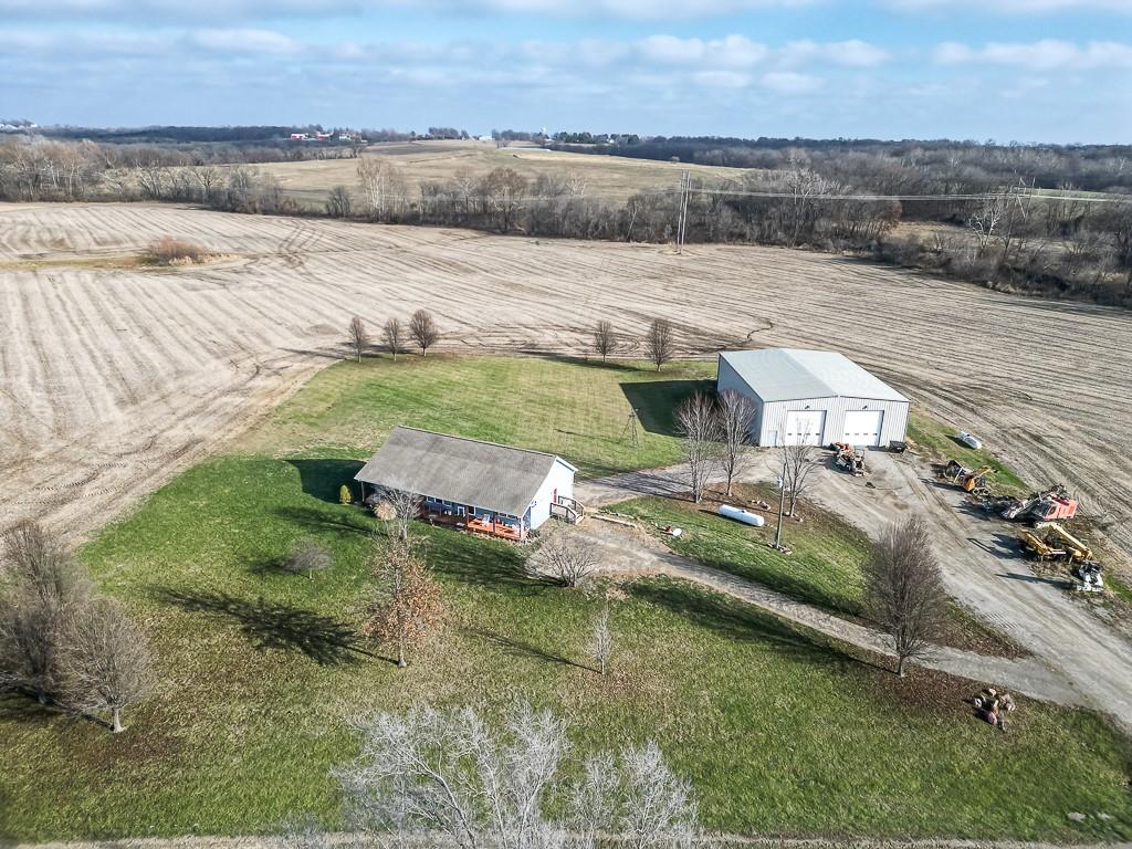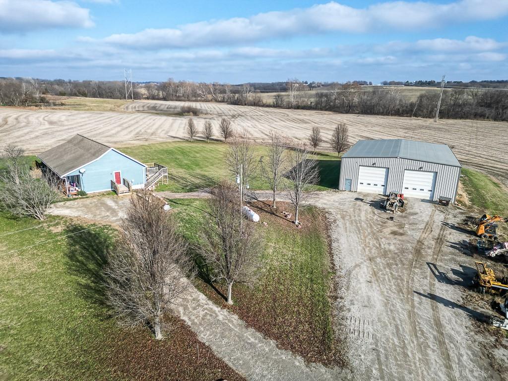 3-BED RANCH ON ALMOST 5 ACRES WITH BIG VIEWS SITTING ON 4.69 ACRES WITH WIDE OPEN SCENIC VIEWS, this 3-bedroom ranch offers the relaxed country setting buyers love. Inside, the open floor plan feels bright and welcoming, with the primary suite set apart for added privacy. It features a walk-in closet, double vanities, a jetted tub, and a separate shower. The other two bedrooms and full bath sit on the opposite side of the home for a simple, functional layout. A covered front porch adds charm, and the full unfinished walkout basement gives you tons of room to expand, including a large workshop area. The commercial quality 60x80 red-iron shop is a standout, offering two 16x16 drive-in doors, two walk doors, insulation, heat, and water—great for running a business, storage, or equipment. The acreage brings space, peaceful views, and plenty of wildlife. This country property offers room to grow and a setting that feels miles away while still within easy reach of town conveniences.
