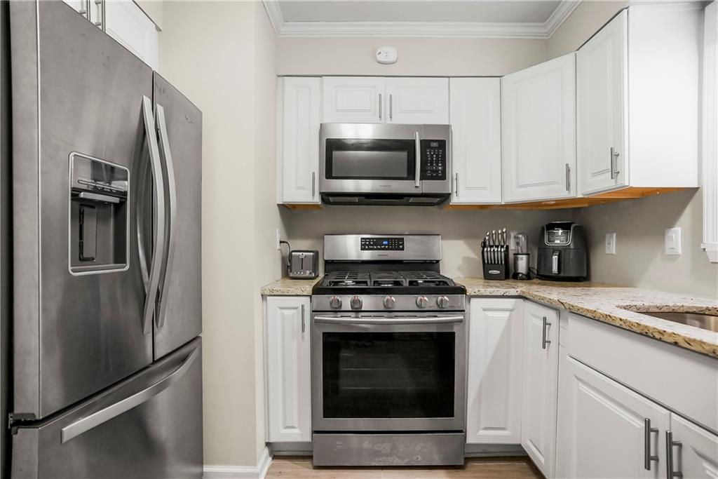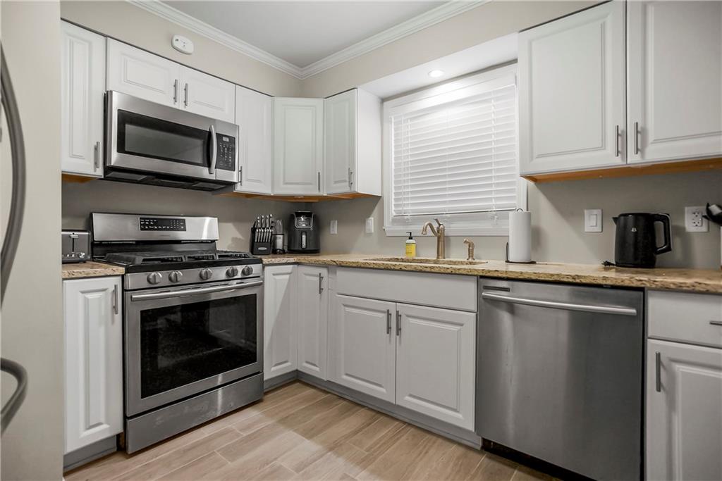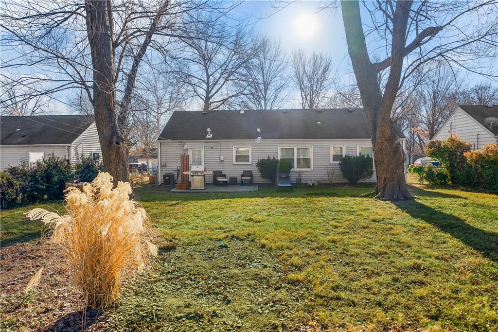Incredibly maintained ranch in sought after Prairie Village. This home offers crisp curb appeal steps from shopping, parks and more. As you enter you are presented with gorgeous premium laminate floors and a spacious living room, offering plenty of space for a dining area. The neutral walls, sunlit windows and lovely neutral floors are the perfect combination. Just off the living room is the remodeled kitchen offering gorgeous white cabinets, granite counters, tile floors, and stainless-steel appliances including a 5-burner gas stove, and refrigerator that stays. Do not miss the built-in spice cabinet. The bedrooms are tucked on the other side of the home offering plush carpet, nice closets and 2-inch blinds as well as some window coverings. The bathroom has been remodeled and offers a newer toilet and neutral decor. This home offers wonderful space. The laundry was relocated to the oversized garage during the kitchen expansion and offers designated space. Do not miss the newer smart garage door, maintenance free siding, all newer windows, fenced yard, maintained HVAC, and sewer line in 2006. This house is a must see!