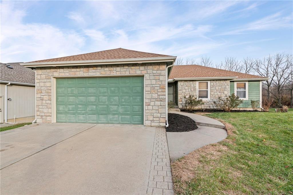 This inviting ranch offers the kind of everyday comfort that instantly feels like home. A bright, open living room welcomes you with vaulted ceilings, a cozy fireplace, and plenty of space to relax or gather. The kitchen flows easily into the dining area, with warm wood cabinets, generous counter space, and natural light pouring in from the back deck—perfect for slow mornings, weeknight dinners, or hosting friends. The primary suite sits tucked away for privacy, complete with a spacious bedroom, walk-in closet, and full bath. Two additional bedrooms and another full bath give you flexibility for guests, hobbies, or a dedicated workspace. Downstairs, the full walkout basement opens a world of possibilities—future expansion, recreation, storage, or an investment opportunity with room to grow. Step outside to the deck overlooking a wide, open yard and view of a neighboring pond, with a peaceful, country-like feel, yet you’re still close to everyday conveniences. A two-car garage, main-level laundry, and a layout designed for easy living make this home a fantastic fit for anyone seeking comfort, simplicity, and potential. Whether you're envisioning your first home, a place to downsize with style, or a property with long-term value, this one delivers the charm and flexibility to make it your own.