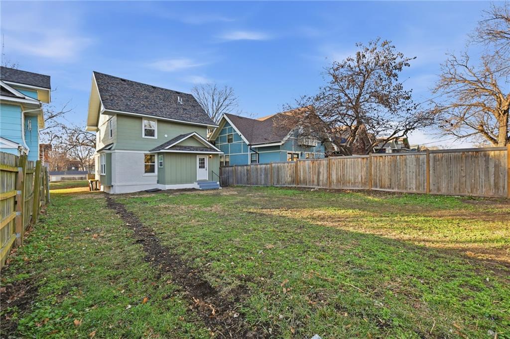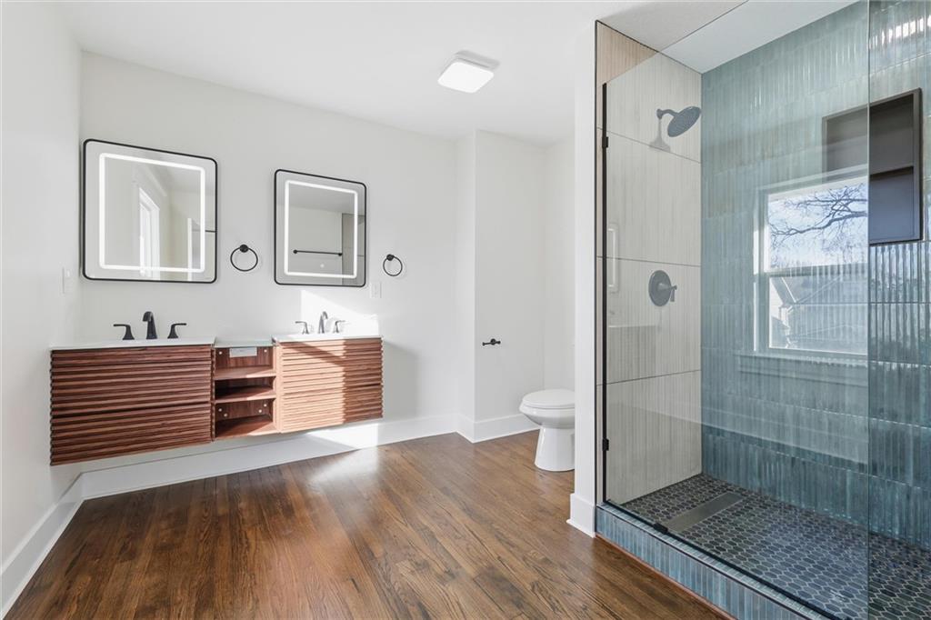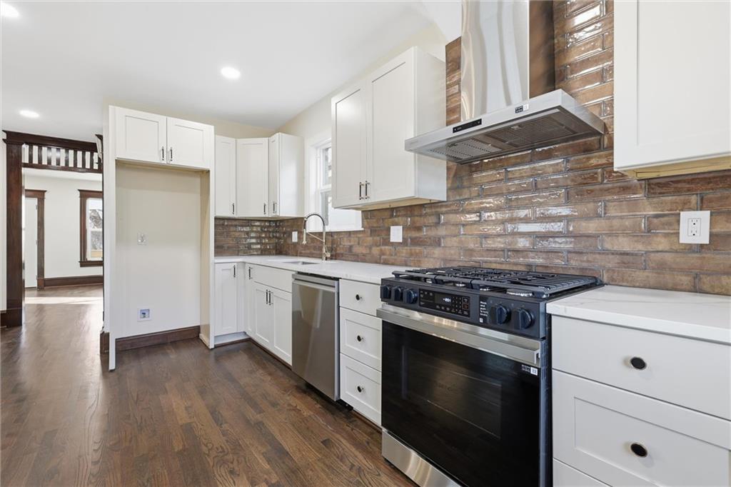 Welcome to this meticulously renovated 3-bedroom, 2.5-bathroom shirtwaist offering over 2,000 square feet across three sun-drenched stories in coveted Longfellow. This stunning home perfectly balances preserved architectural character with modern luxury. Step inside to discover beautifully restored wood trim, baseboards, and window casings creating warmth against fresh white walls and gleaming new hardwood floors throughout. The generous room sizes provide true flexibility for living, working, and entertaining. The showstopper kitchen features crisp off-white shaker cabinets, stunning backsplash, quartz countertops, and stainless appliances. The designer bathrooms rival luxury hotels with floating vanities, LED-lit mirrors, spa-worthy walk-in showers with contemporary tile, and sophisticated black matte fixtures. Pops of color through hexagon floor tiles add personality throughout. The expansive third-floor bonus space with vaulted ceilings offers endless possibilities as a primary suite, office, or media room. Every major system is brand new including dual-zone HVAC (first and second floors on one system, third floor independently controlled), energy-efficient windows, and a new roof. Located in one of KC's most walkable neighborhoods, you're steps from Longfellow's restaurants, coffee shops, and local businesses. Rare three-car parking includes a two-car garage plus covered carport accessed from the rear. The nice-sized yard and covered front porch complete this exceptional package. This isn't just another flip—it's a thoughtful restoration honoring classic bones while delivering every modern convenience. Move-in ready and waiting for you.