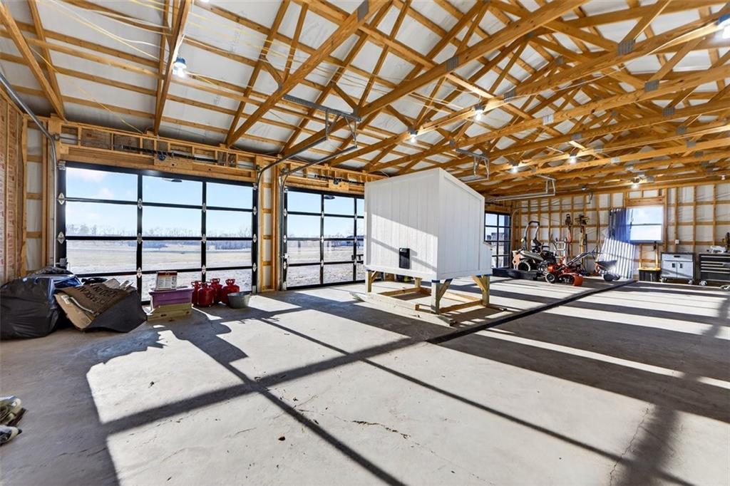 This reverse 1.5-story home was built with intention, offering peace, space, and true main-level living on serene acreage. The ADA-friendly floor plan is completely flat throughout, creating an effortless flow from room to room—including a flush, walk-in shower. The main living area was freshly painted in December 2025. Inside, the home features high-end maple hardwood floors known for exceptional durability, granite countertops, and smart-home capabilities. The spacious primary suite includes a large walk-in closet and an oversized master bathroom designed for comfort and ease. For added buyer confidence, the home was recently appraised in December at $680,000 prior to listing. Outdoor living is a standout feature with an oversized back deck and an even larger patio below, ideal for entertaining or enjoying peaceful sunsets. The property also includes a custom archery range and a Jamesport Builders 1,500 sq ft, 4-car metal shop, offering endless options for storage, hobbies, or business use. A winterized chicken coop adds charm and function, featuring durable caging with removable custom corrugated panels and an infrared heat lamp. Panels can be removed in warmer months for full airflow. Chickens stay with the property, providing fresh eggs; the rooster is confident, calm, and non-aggressive. The property offers six total garage spaces, and select items, including the Bad Boy mower, are negotiable. Review all photos to fully appreciate the home, land, and lifestyle this property offers within its boundaries. This home has been meticulously taken care of and ready to be embraced by it's next owner.
