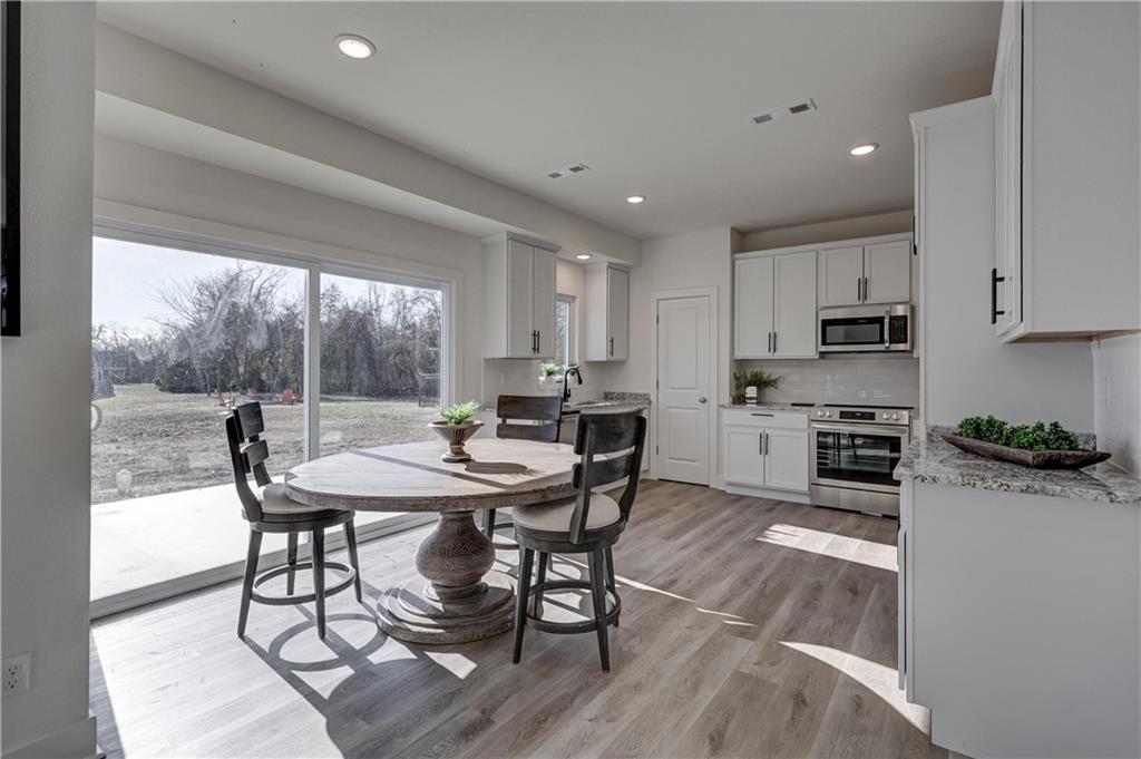 Welcome to the Bradford two-story in the sought-after Silverback Landing community. This four-bedroom, 2.5-bath home offers a thoughtful layout that blends everyday comfort with refined style. The main level is filled with natural light thanks to large windows that create a bright, welcoming atmosphere throughout. The gourmet kitchen features custom cabinetry, granite countertops, and high-end appliances, and flows seamlessly into the dining and living areas—perfect for both quiet evenings at home and hosting friends or holiday gatherings. A convenient half bath is located downstairs and just off the kitchen are sliding doors that lead to an east-facing patio, ideal for morning coffee or outdoor dining. Upstairs, the primary suite serves as a private retreat with a spa-inspired en-suite bath and generous closet space. You’ll also appreciate the second-floor laundry—no more hauling baskets up and down stairs. Three additional bedrooms provide ample closet space and flexibility for guests, family, or a home office. Situated on an a corner lot, the yard offers plenty of room for recreation and entertaining. A sprinkler system and fresh sod are included, allowing you to focus on adding your own personal landscaping touches. Located just minutes from PSU, shopping, grade school, and Mercy Hospital, this home also enjoys walking trails and low traffic—perfect for evening strolls or jogs. This is a truly exceptional home in a fantastic neighborhood.