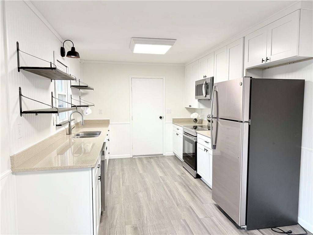 Welcome to this beautifully four-bedroom, two-bath home offering a perfect blend of style, comfort, and functionality. The modern kitchen features stainless steel appliances and stylish open shelving, creating a clean and contemporary look. This cozy home is filled with abundant natural light throughout, enhancing the warm and inviting atmosphere. Step outside to enjoy a spacious deck and generous outdoor space—ideal for entertaining, relaxing, or enjoying everyday living. Schedule your private showing today and see all it has to offer.
