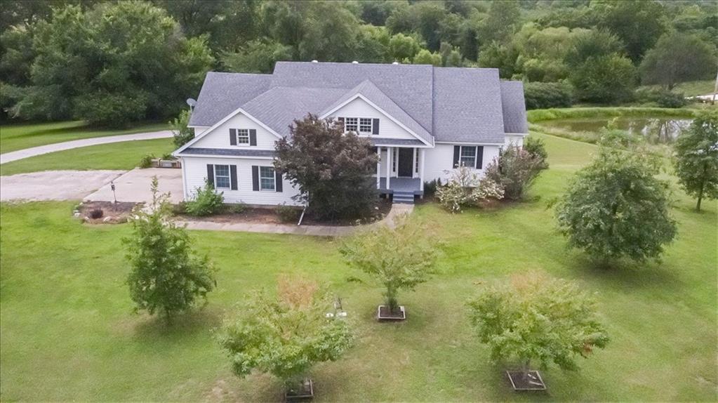 Check out this gorgeous custom home hitting the market for the first time! This property is in a perfect location, just off of BB highway southwest of town. A completely custom home, this place has so much to offer! As soon as you walk in, you'll be greeted with a modern yet warm floor plan, with a wooden vaulted ceiling, custom cabinets, and beautiful hardwood floors. The main level features two bedrooms including a large master suite. There is a full finished basement with three other bedrooms and another full bath. The basement also features another garage space and walkout. Enjoy the beautiful setting with timbered view surrounded by ponds.