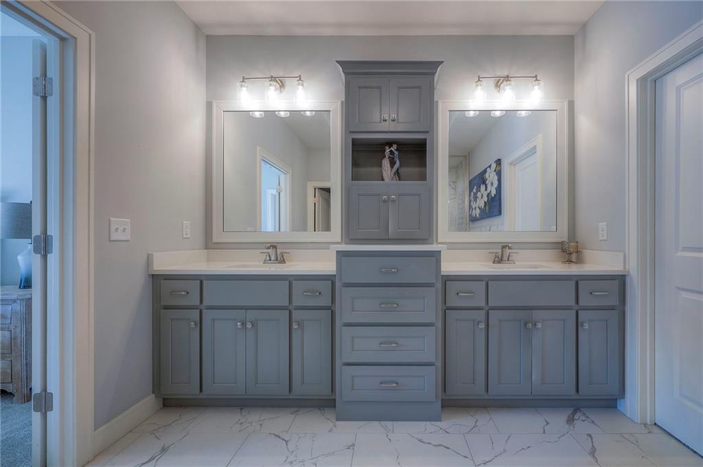Why wait for new construction! This pristine home has a recently added screened-in patio and interior blinds. The Prescott plan by Crestwood Custom Homes boasts 10' ceilings in the entry & great room and so much natural light from the great room wall of windows. Hardwood floors throughout the entry, great room, kitchen and breakfast room. The kitchen has large island with quartz counter tops, custom cabinets, gas cooktop, built in oven & microwave, and a walk-in pantry. The spacious great room offers floor to ceiling stone fireplace. The primary bedroom/bath feature a large walk-in closet, double vanity, an oversized zero entry walk-in shower and a free standing tub. Easy access to the laundry room directly from the master closet. Additional bedroom and full bath on the main floor. Finished lower level is the perfect entertaining space with large family room, walk up bar with mini refrigerator, sink, and granite/quartz countertop. There are also 2 additional bedrooms - one with double doors (great for exercise room or office) and an additional full bath in the lower level. Enjoy your morning coffee relaxing on the covered screened-in patio. Your quarterly HOA dues cover yard work, snow removal, exterior painting, winterization of irrigation, and common ground maintenance. The home is close to shopping, restaurants and highway access. Don't miss the opportunity to make this impeccably maintained house your next home!