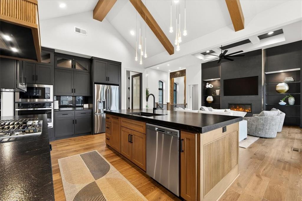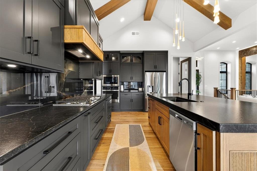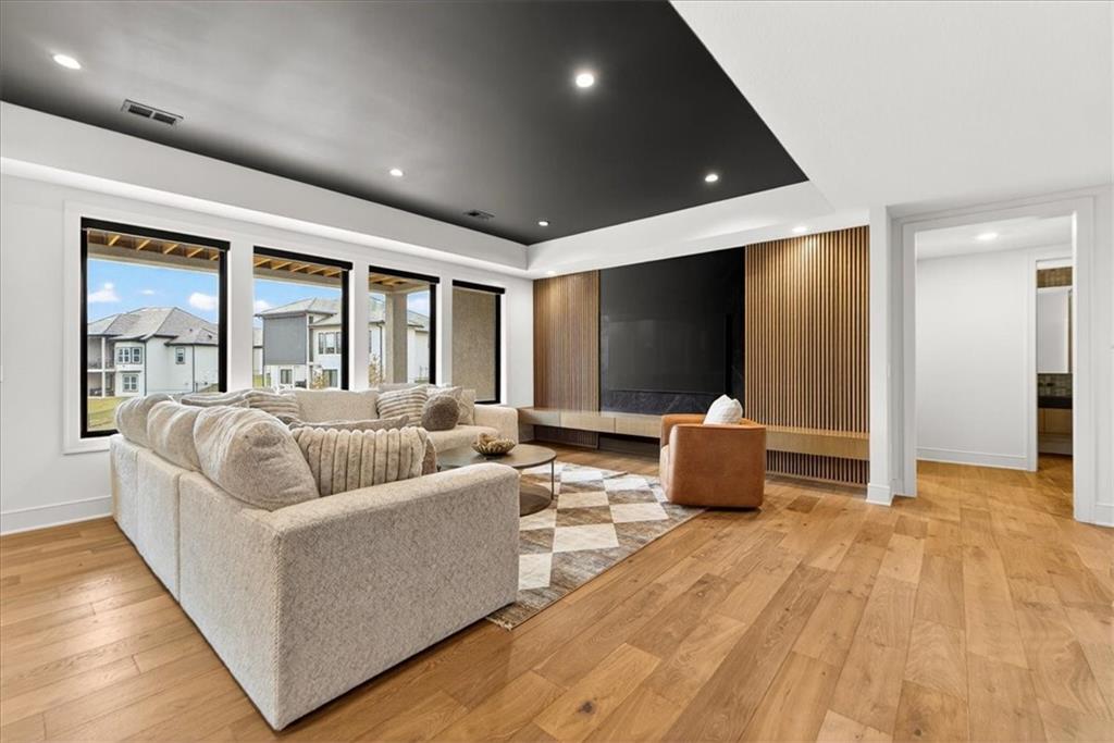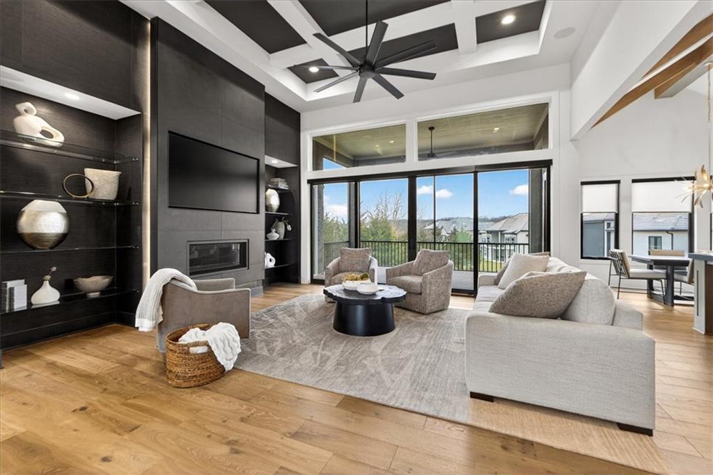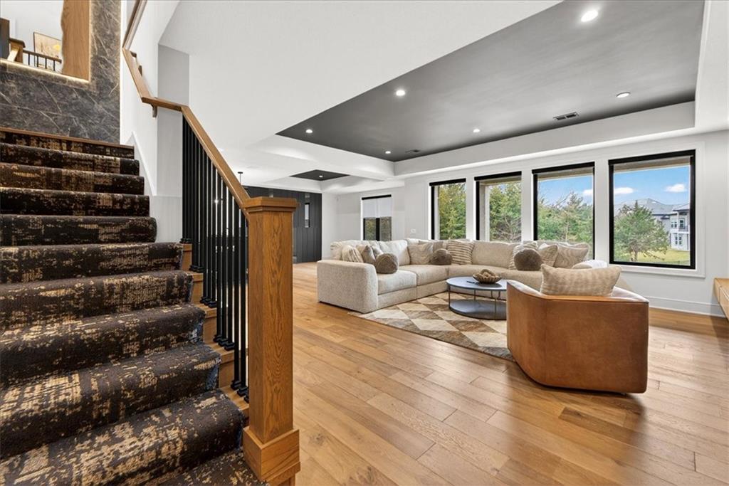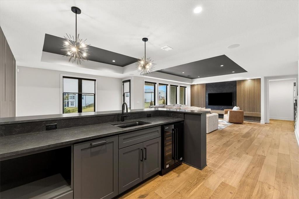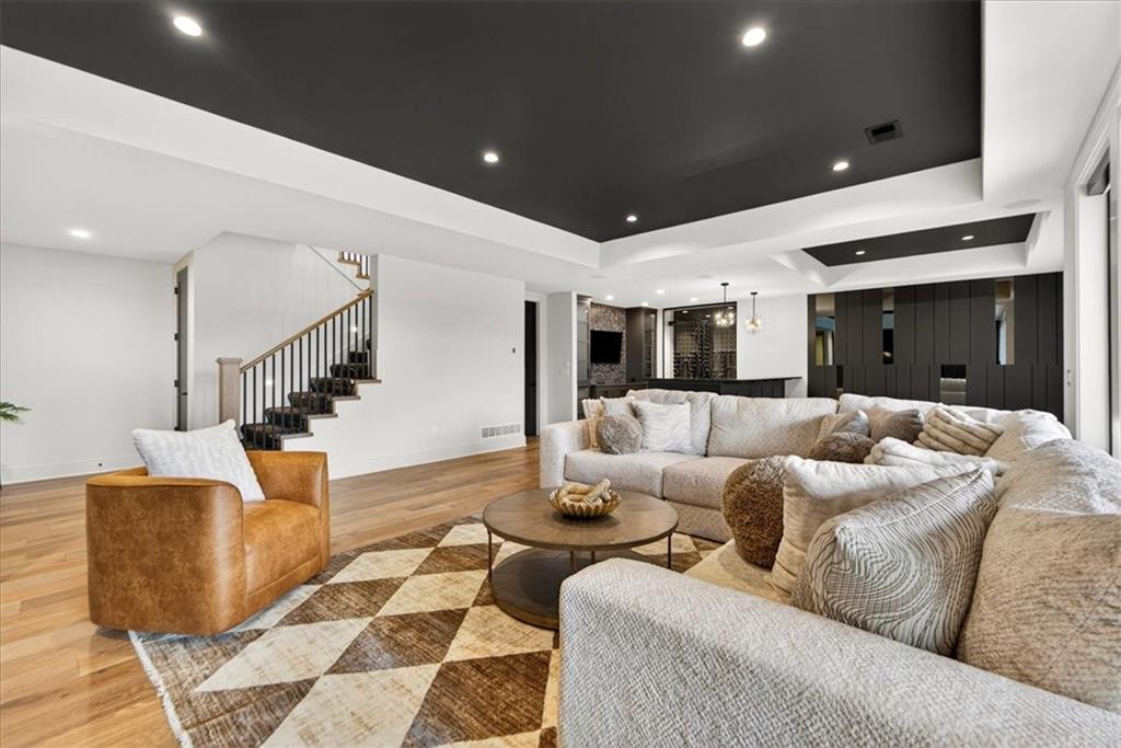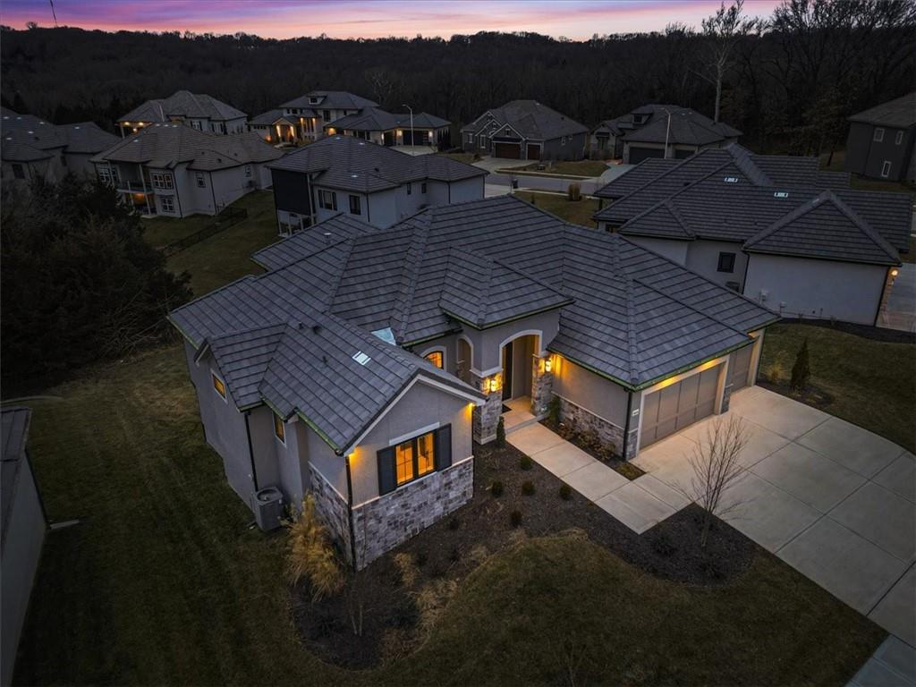 Move-in ready Casa Bella former model in The Preserve at Forest Ridge Estates, featuring 3.5 bedrooms, bathrooms, and 3,659 square feet of curated luxury on a private wooded lot. Designed for elevated everyday living and effortless entertaining, this residence showcases soaring ceilings, a wall of windows, custom window treatments throughout, and a screened-in covered patio with multi-slide doors that open wide to nature, creating a true indoor-outdoor entertaining experience. At the heart of the home, a chef-inspired kitchen is complemented by a hidden Caterer’s Kitchen tucked inside an oversized pantry, keeping hosting beautifully organized and clutter-free. From the moment you arrive, it feels less like a house and more like a retreat. Urban convenience meets serene seclusion just minutes from Parkville, downtown Kansas City, and MCI airport. The gathering room is light-filled and dramatic, with effortless flow to the patio where mornings feel calmer, evenings feel warmer, and guests naturally gather. The owner’s suite is a sanctuary with a spa-like bath and a generous, sunlit walk-in closet. A second main-level bedroom offers versatility as a refined guest suite or an elegant home office, giving you flexible space that adapts to your lifestyle. On the lower level, the home transforms into an entertainer’s haven with an expansive rec room anchored by a custom entertainment wall and a striking wet bar featuring a one-of-a-kind wine display and dedicated beverage refrigeration. Two additional bedrooms on this level provide comfortable, private retreats for family and guests. A fully suspended, excavated garage offers exceptional storage and future finish potential, whether you envision a fitness studio, golf simulator, theater room, or hobby space. With modern design, model-worthy finishes, and an unbeatable location, this residence is more than a home. It is a lifestyle, ready for its next chapter.
